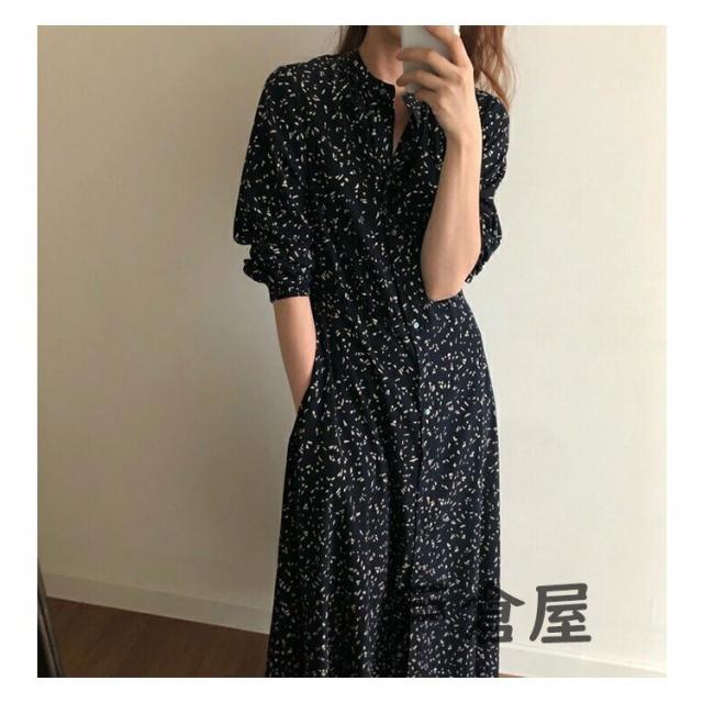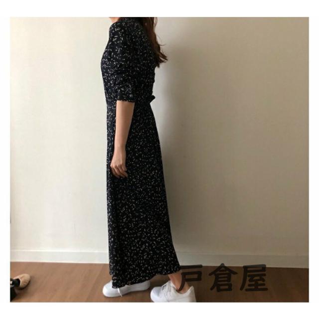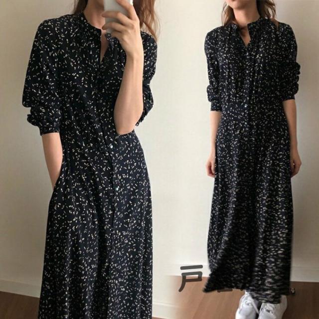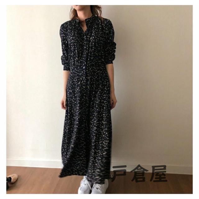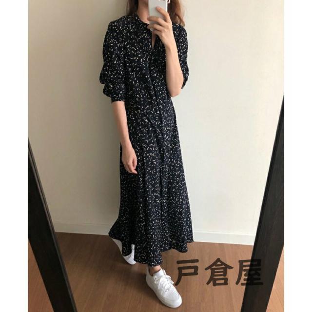 シャツワンピース レディース マキシワンピース 春夏秋 長袖ワンピース 花柄 シフォンフレアスカート オシャレカジュアル韓国風 大人 30代 ゆったり