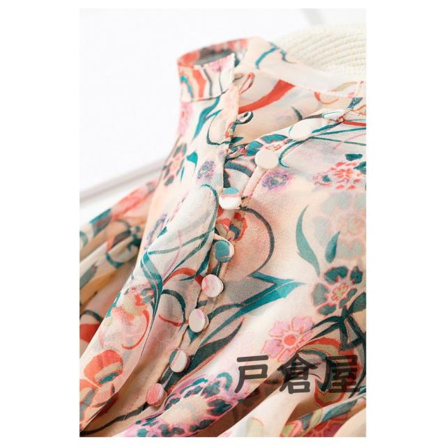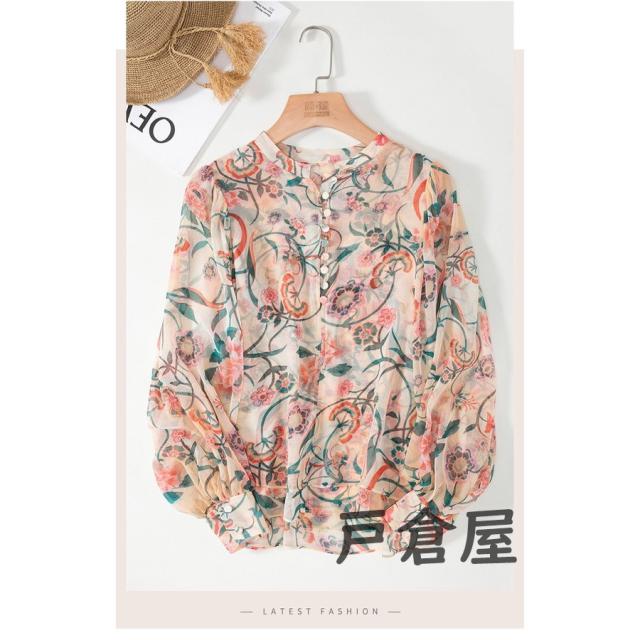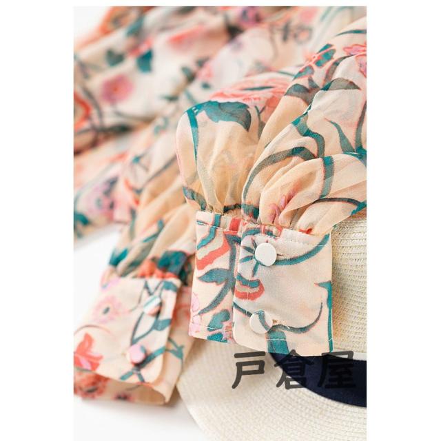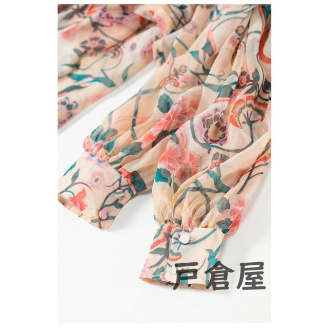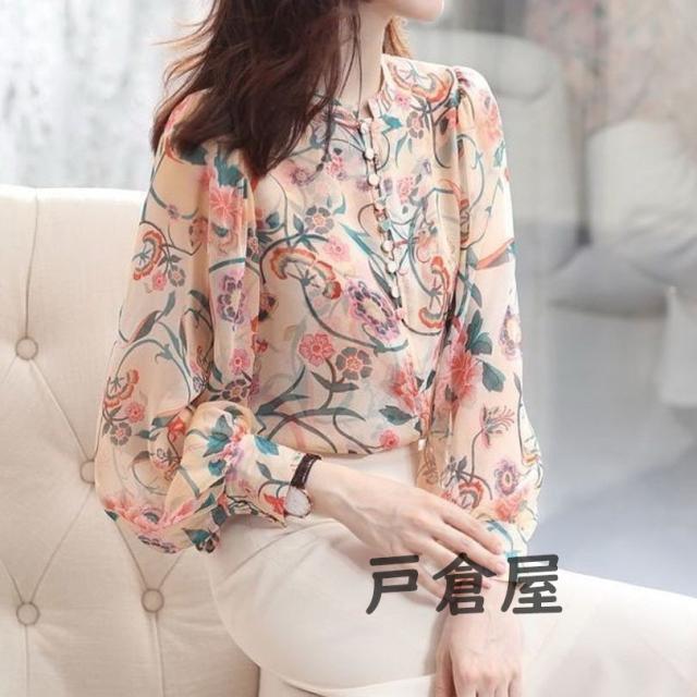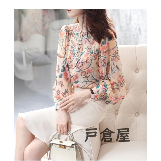 ブラウス レディース 2021 春夏秋新作 オシャレシフォンブラウス 花柄シャツ パフスリーブ 長袖トップス 大人 通勤OL ゆったり シャツ30代 50代