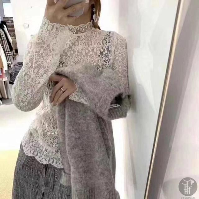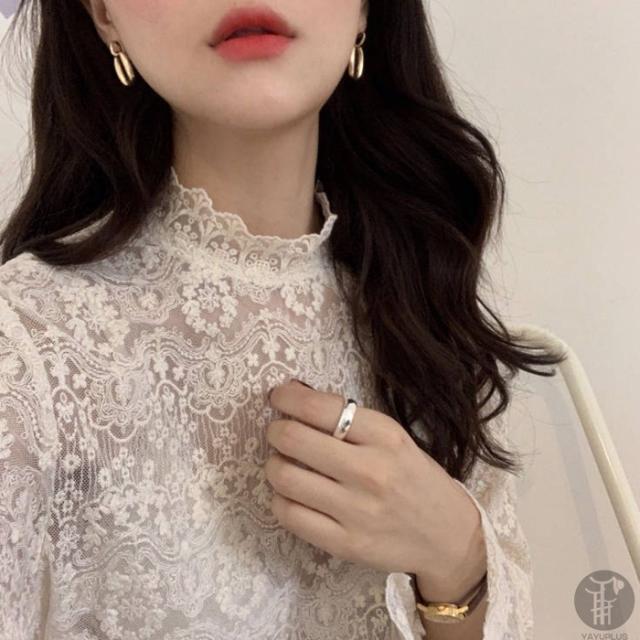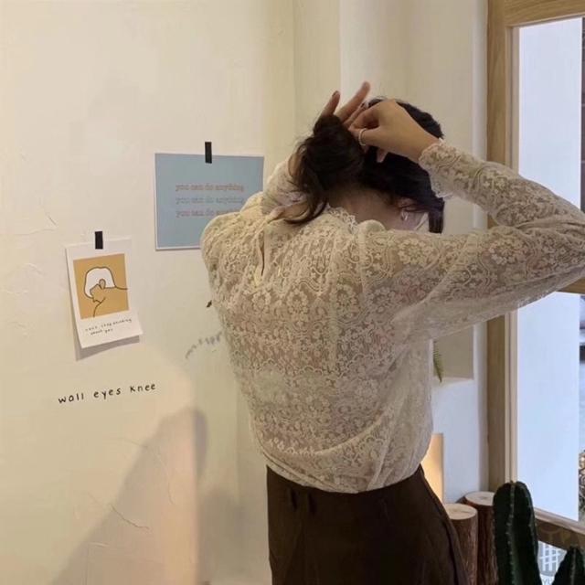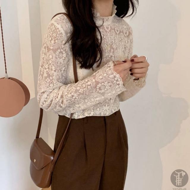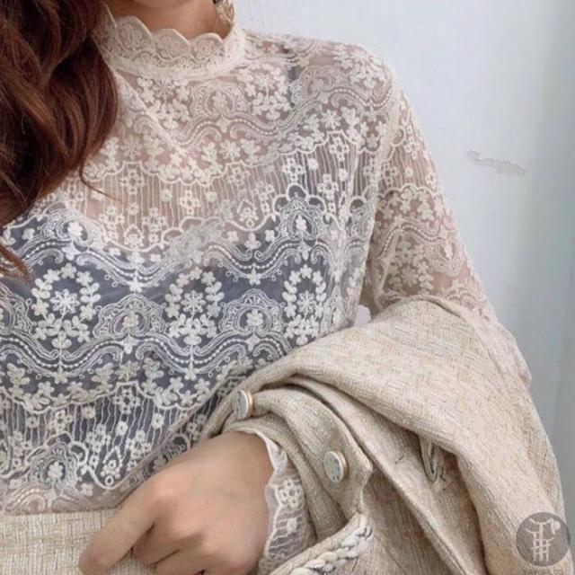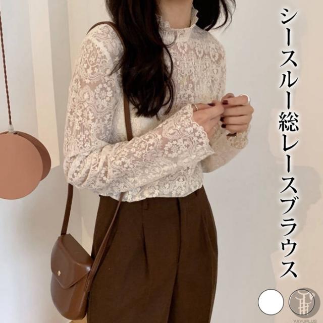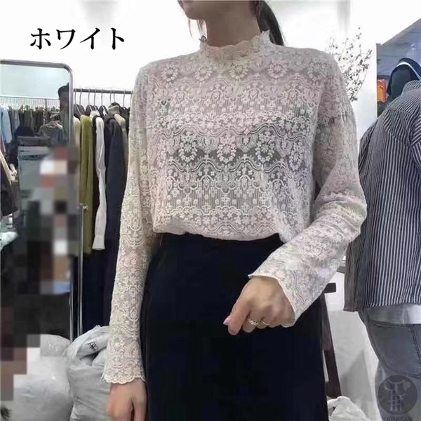 総レースブラウス レディース 透け感 レースブラウス プチハイネック シースルー レース トップス ブラウス 長袖 可愛い 送料無料 代引不可