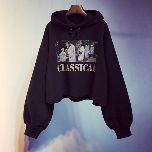 ショート丈 Tシャツ 韓国 オルチャン ストリート ダンス 衣装 K-POP ロゴ 原宿系 長袖 黒 赤 ロンT HIPHOP トップス