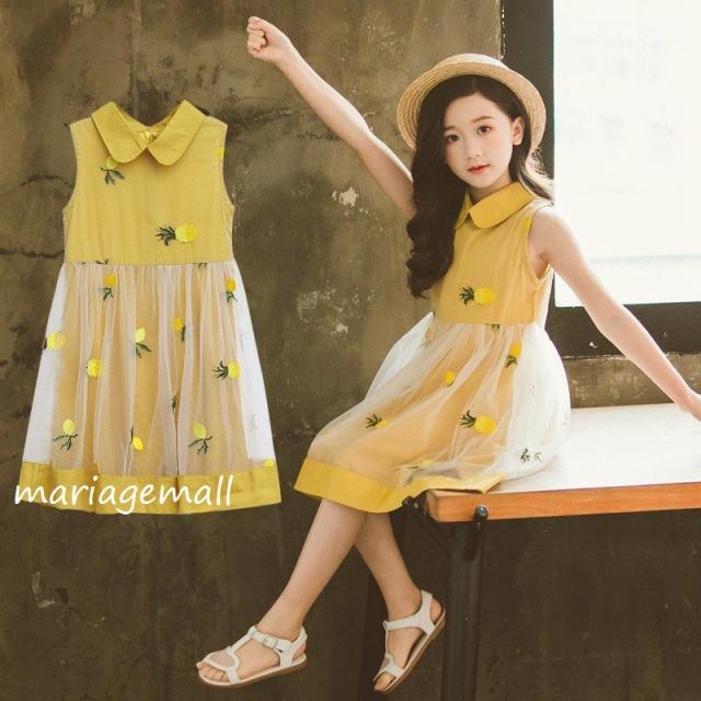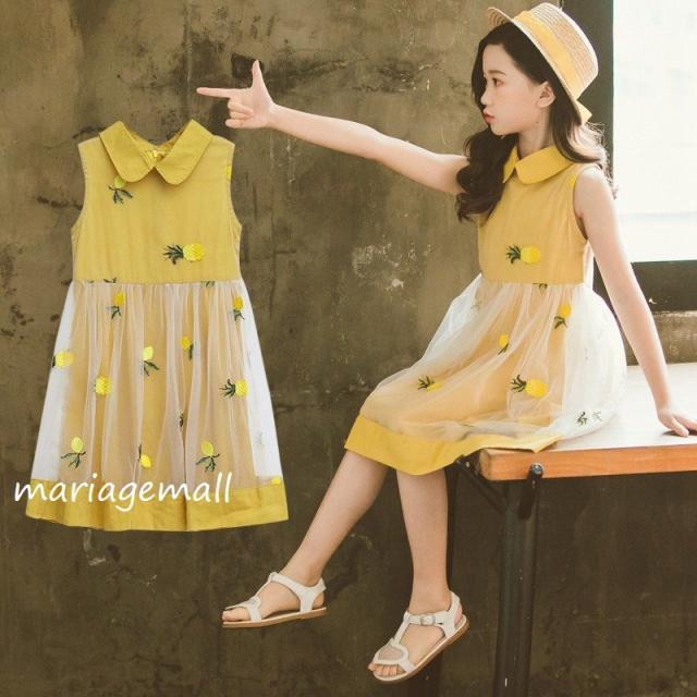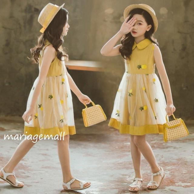 子供 ワンピース ノースリーブ 女の子 キッズ 夏 子供服 子供ドレス 刺繍 切り替え チュール コットン 可愛い きれいめ カジュアル ドレス 卒園式 入学式