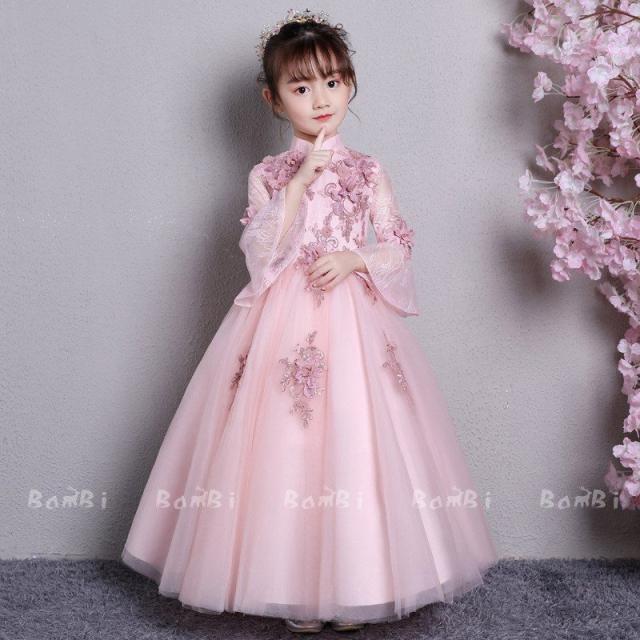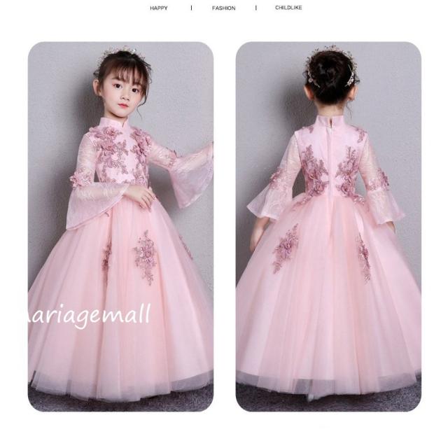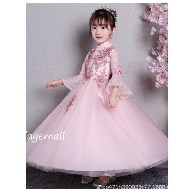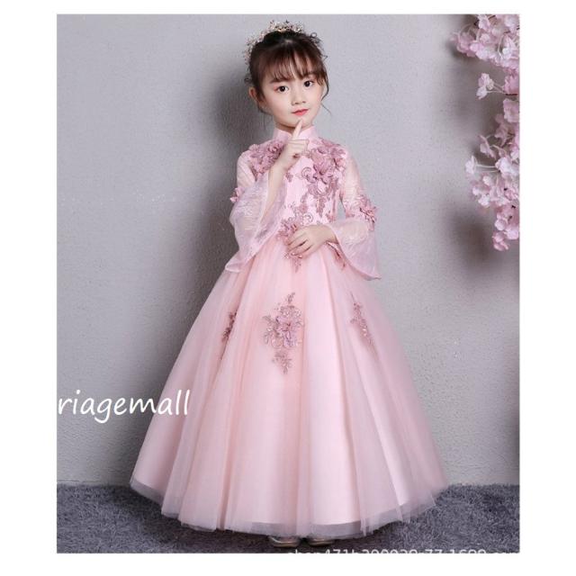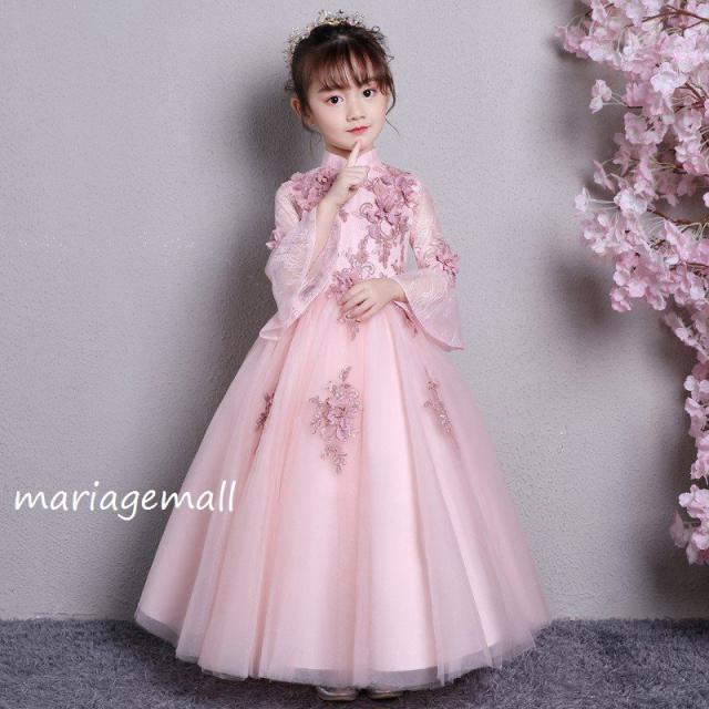 子供ドレス 子ども ドレス春夏秋冬七丈袖 花チュール ドレス ジュニア フォーマル用 ピアノ発表会 二次会 子ども 花嫁 結婚式 ダンス キッズドレ