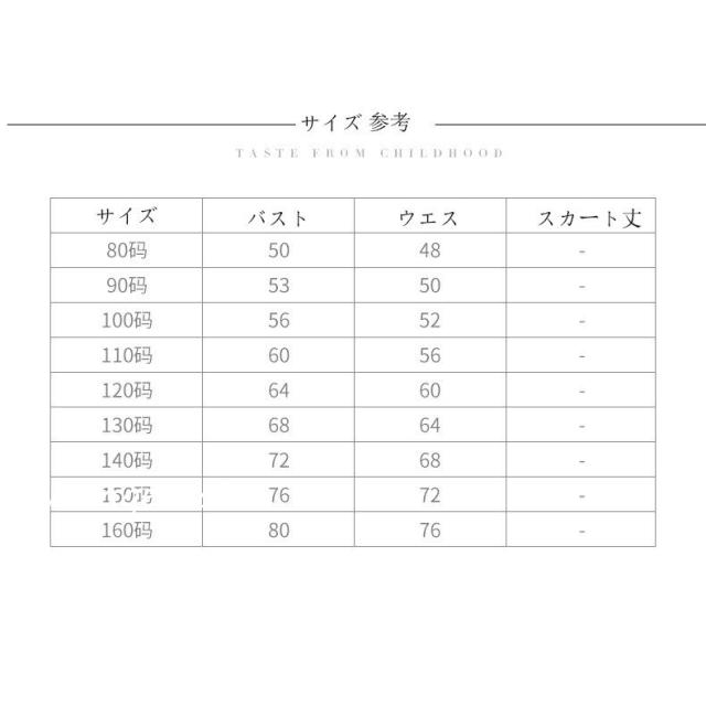 | サイズについての説明 | 【サイズ】:110-160 ご注意事項 ※モデル着用写真は画面上のカラーと実物では、多少色味が異なって見える場合もございます。お客様が使用するパソコンのモニター設定や部屋の照明により多少、色の変化が感じられる場合がございます。 ※サイズは人の手によって測っているため、実寸は商品によって(2?3 cm前後)に誤差が生じる場合がございますので、予めご了承くださいませ |