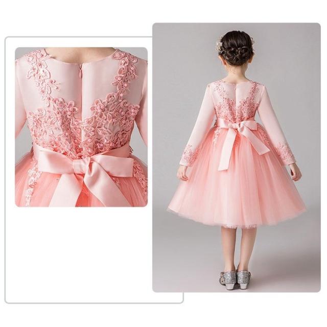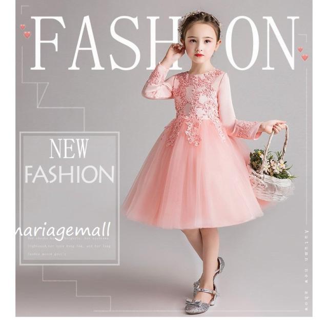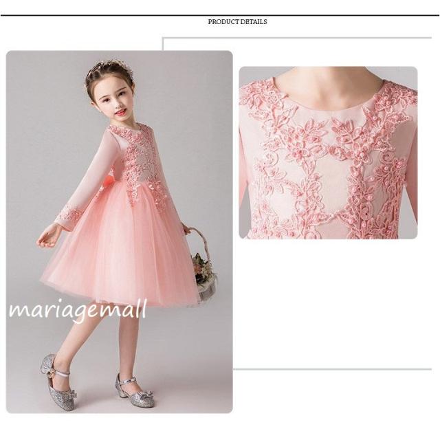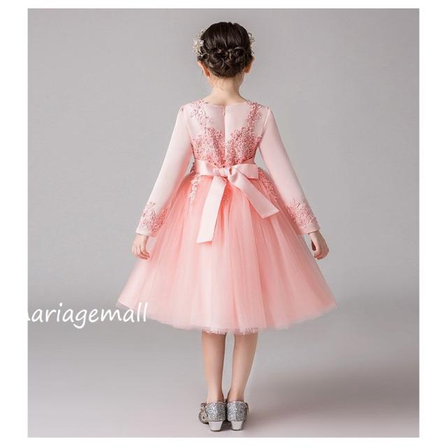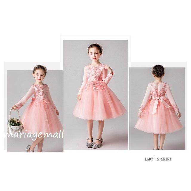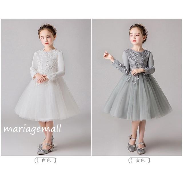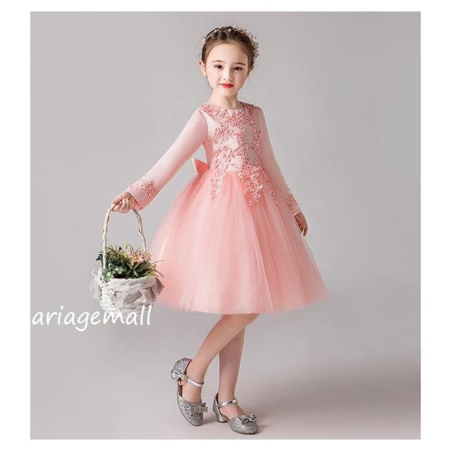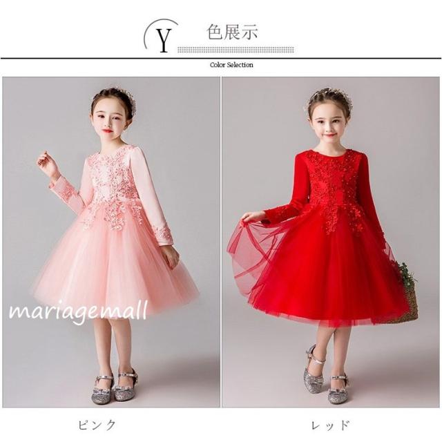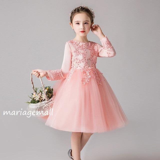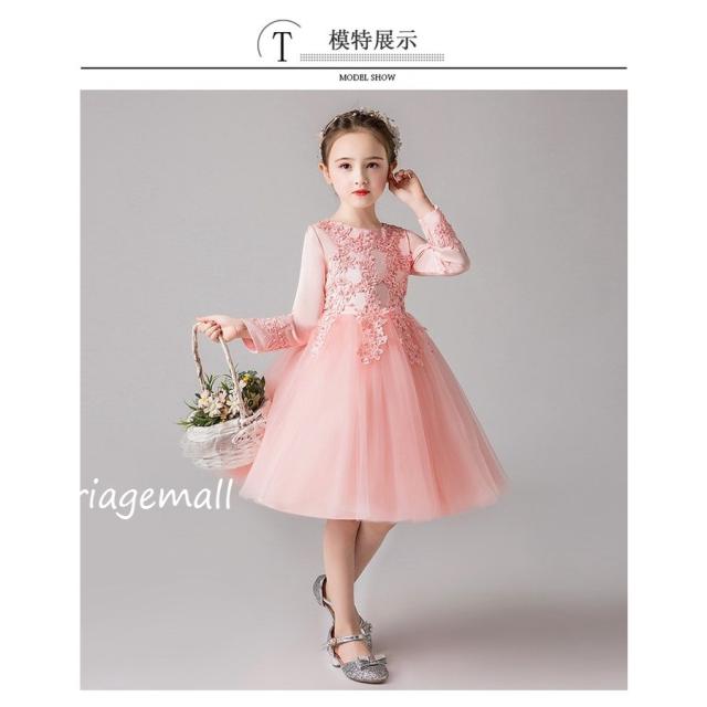 女の子ドレス子供ドレス ピアノ春秋冬発表会 ロング 子どもドレス長袖花刺繍ワンピース かわいい 結婚式 2次会 披露宴 パーティー 同窓会演出4色