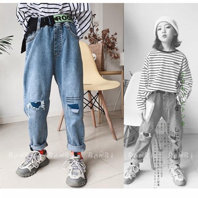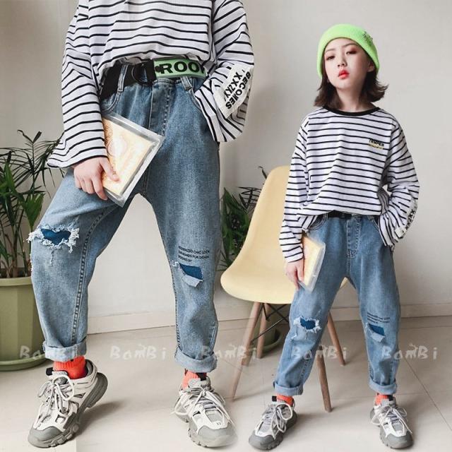 子供服 デニムパンツ 女の子ダメージズボン カジュアル ロングパンツ 長ズボン ボトムスデニム キッズ ゆったり 可愛い きれいめ //卒園式/入学式