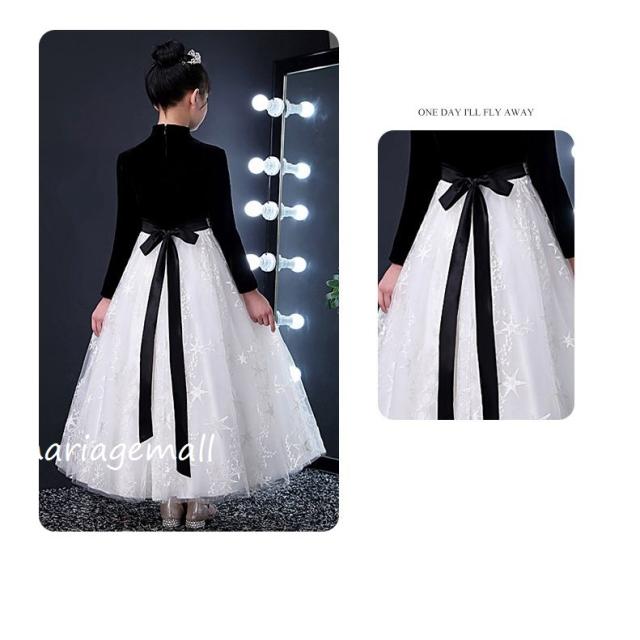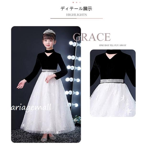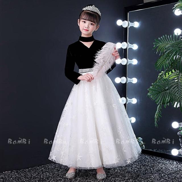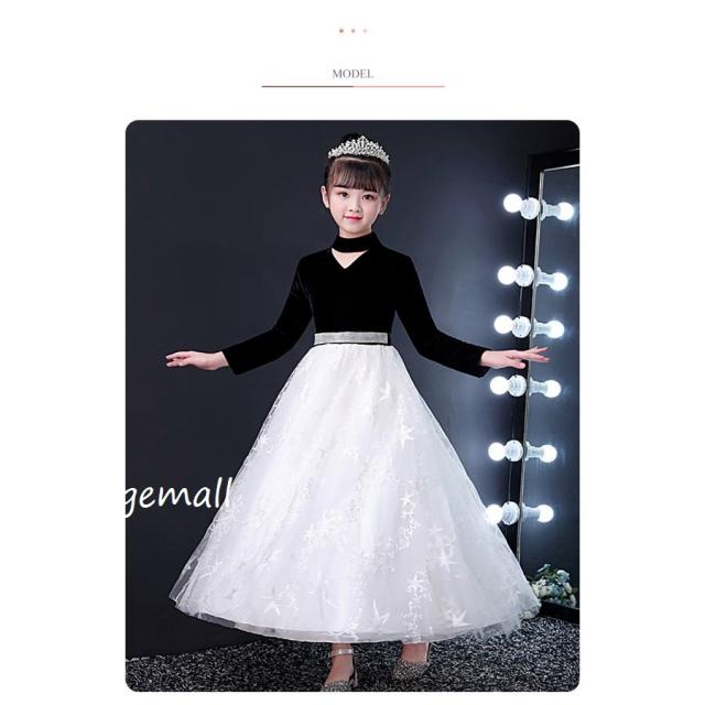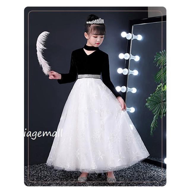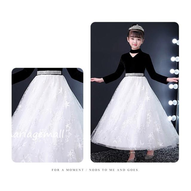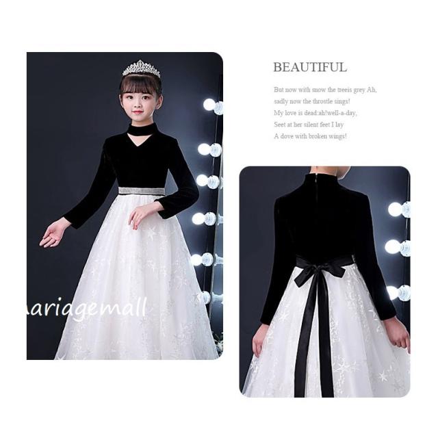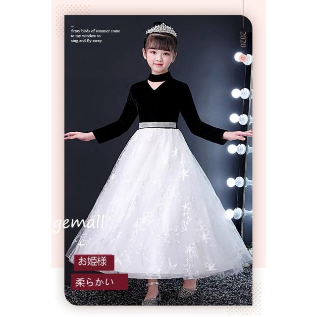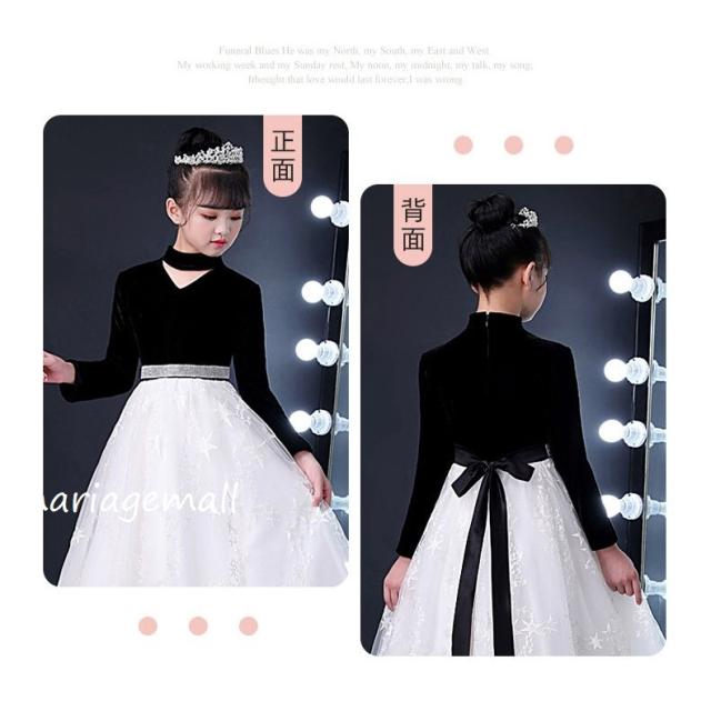 子供服 ドレス フォーマル レース 秋冬ベロア長袖ワンピース キッズ ジュニア ドレス お姫様 ピアノ 発表会 結婚式 七五三花嫁