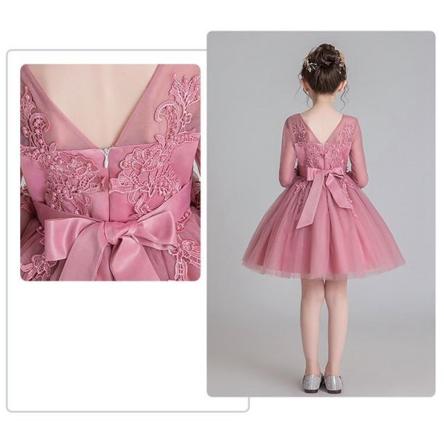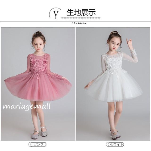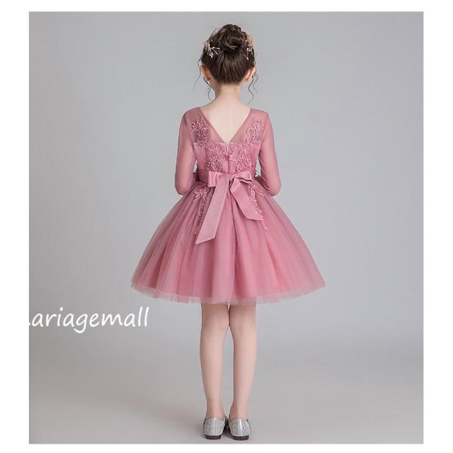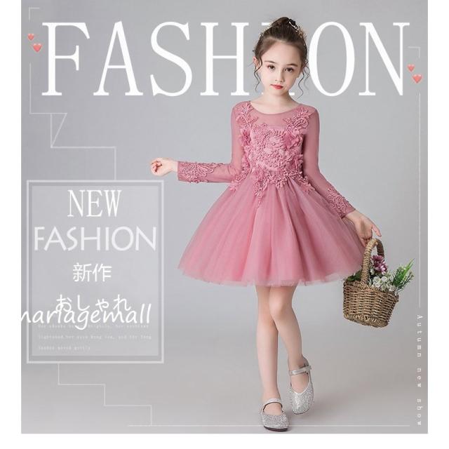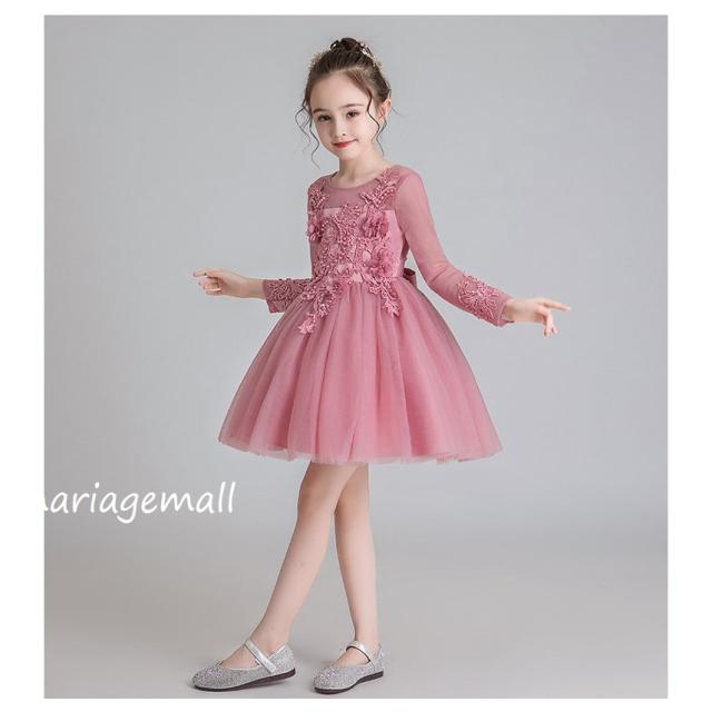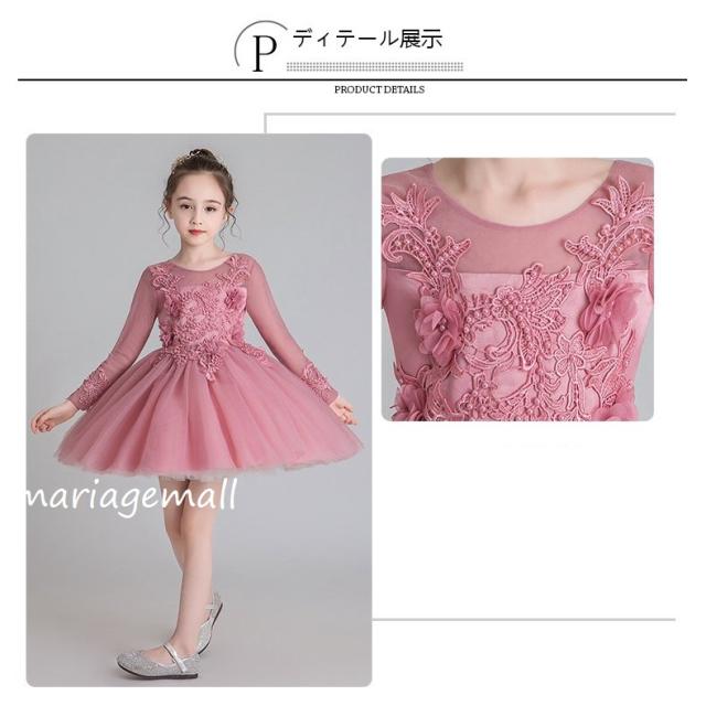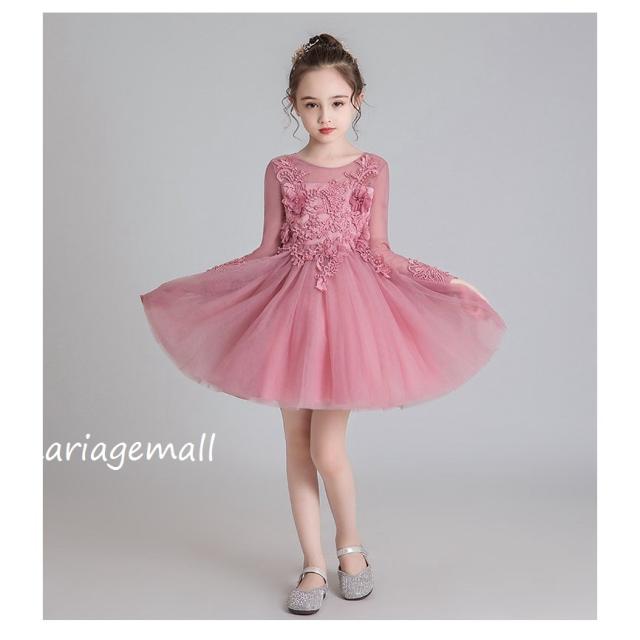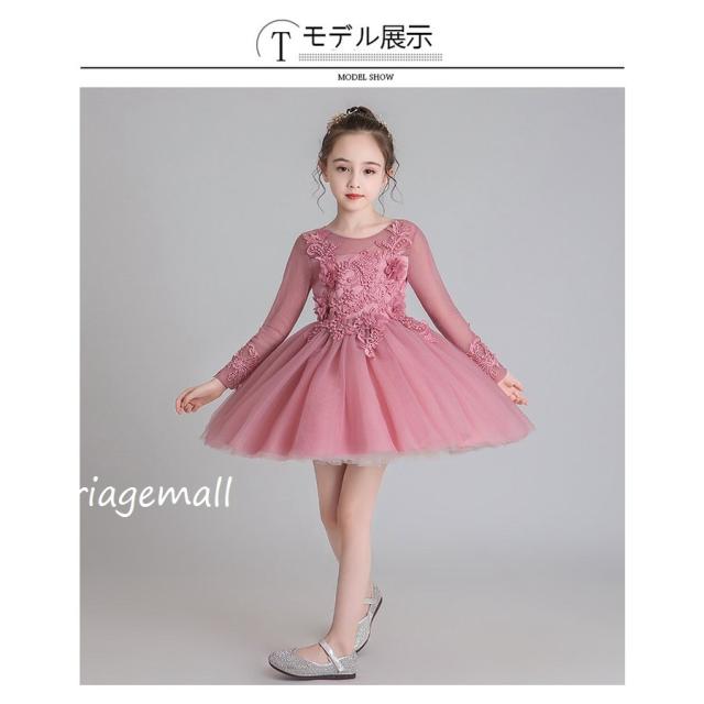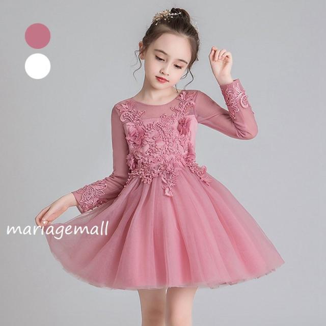 子供服 ドレス フォーマル レース 秋冬長袖花刺繍ワンピース キッズ ジュニア ドレス お姫様 ピアノ 発表会 結婚式 七五三花嫁
