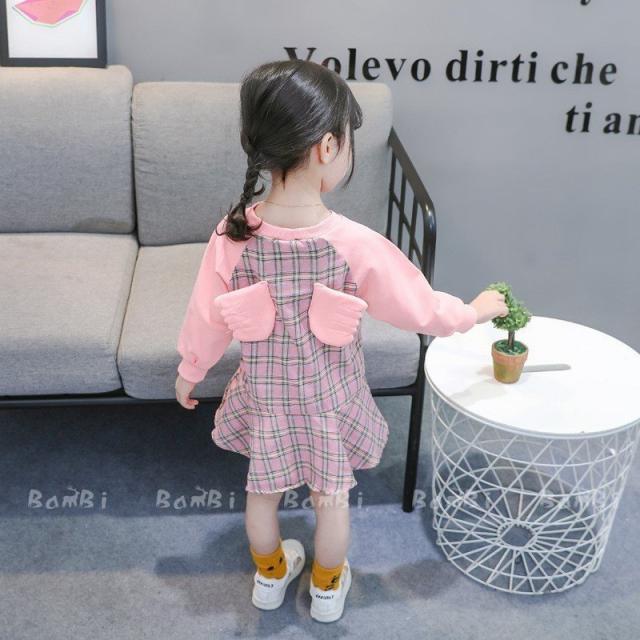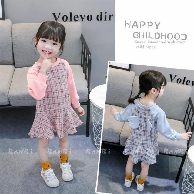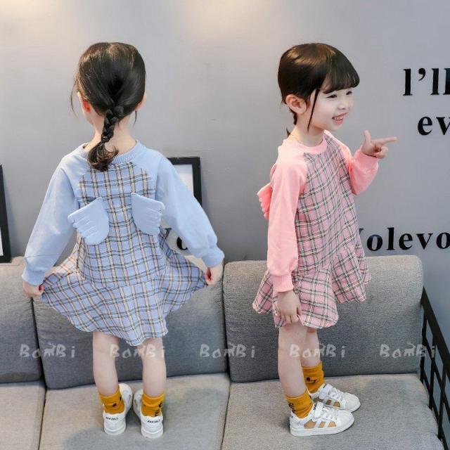 子供服 ワンピース 女の子 春秋 Aライン 長袖チェック柄翼付きロング丈 リゾート フレアスカート おしゃれ きれいめ キッズ 女児 人気 可愛い ジュニア服