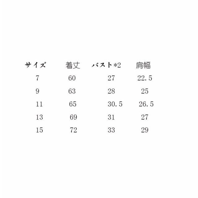 | サイズ | 7参考身長90cm 9参考身長100cm 11参考身長110cm 13参考身長120cm 15参考身長130cm |