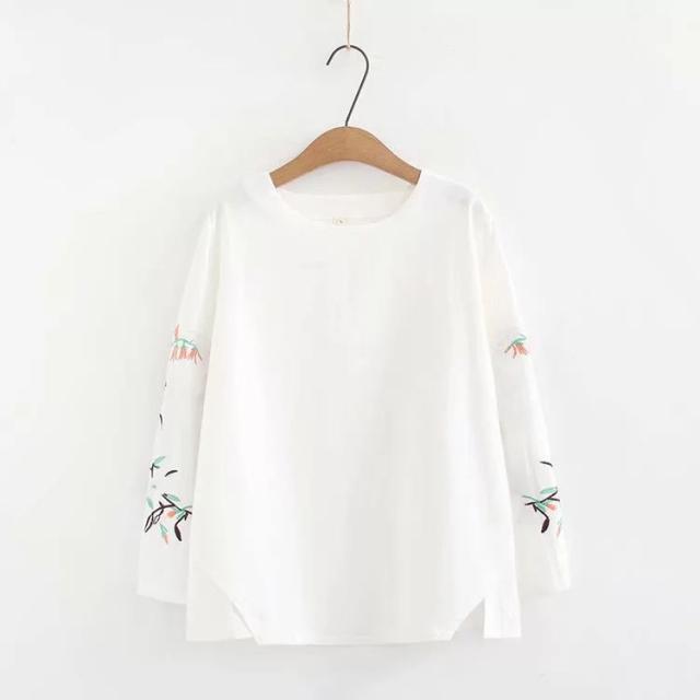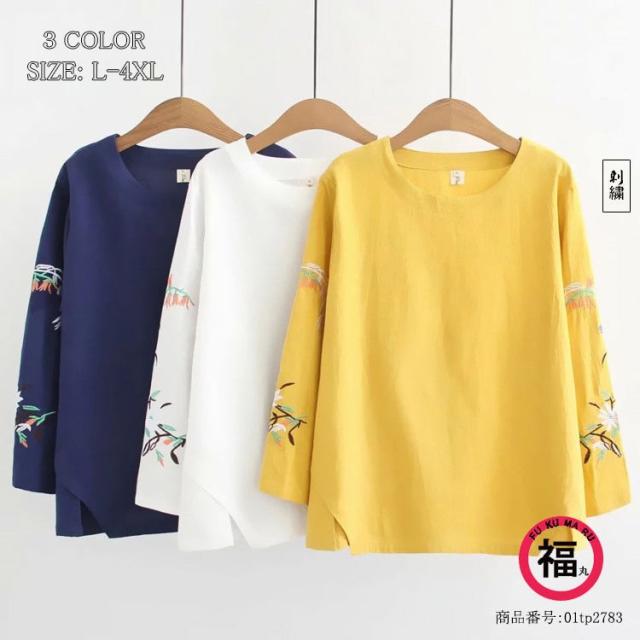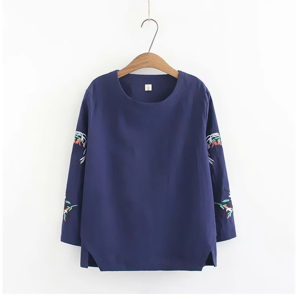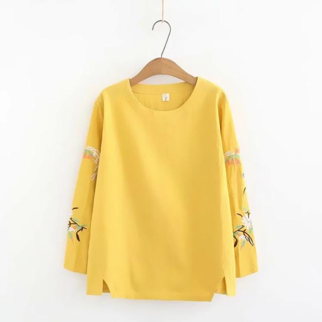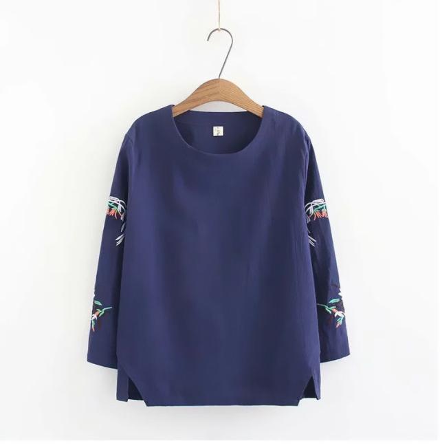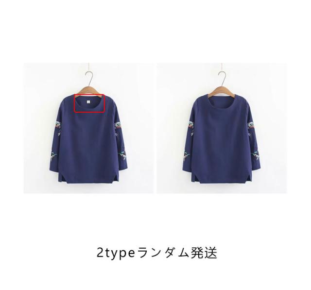 送料無料 シャツ 刺繍 ブラウス シャツブラウス トップス プルオーバー レディース Uネック 柄 通気性 長袖 体型カバー 大きいサイズ ゆったり シンプル 春秋 春
