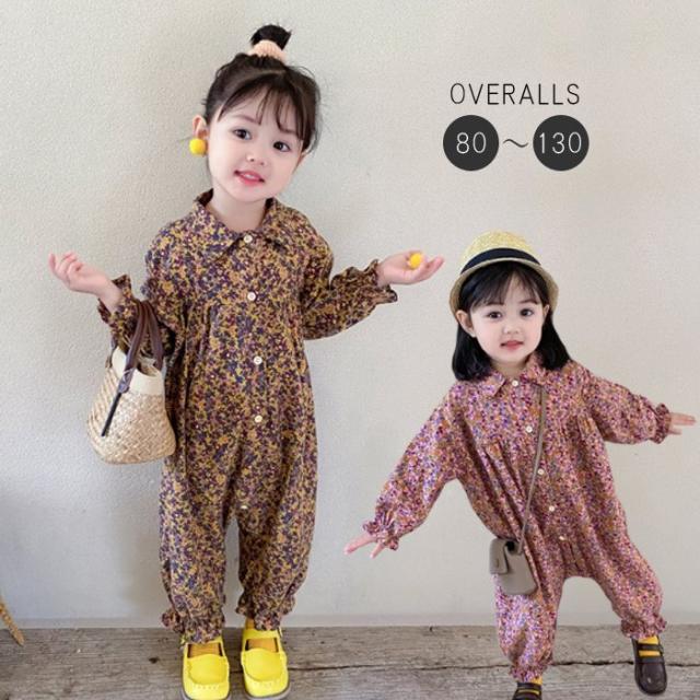 キッズ オールインワン 花柄 つなぎ 長袖 春 女の子 子供服 キッズ 送料無料 80cm 90cm 100cm 110cm 120cm 130cm