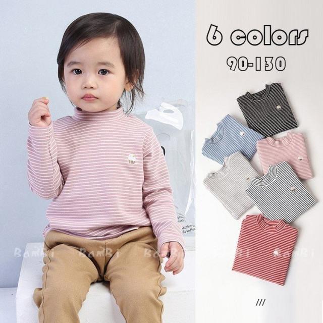 子供服 ロンT キッズ 女の子 男の子 子供服 ガールズデザイン 長袖 ハイネック トップス ボーダー柄 綿 Tシャツ 可愛い 秋冬新作 90/100/110/120/130CM