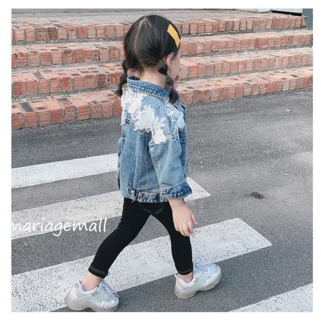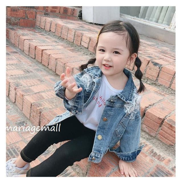 デニムアウター 子供服 コート 春秋 女の子 デニムアウター デニム ジーンズ ポケット付き 長袖 折り襟 おしゃれ 子ども服 キッズ 女児 無地