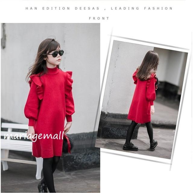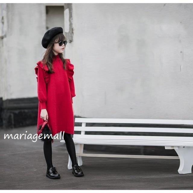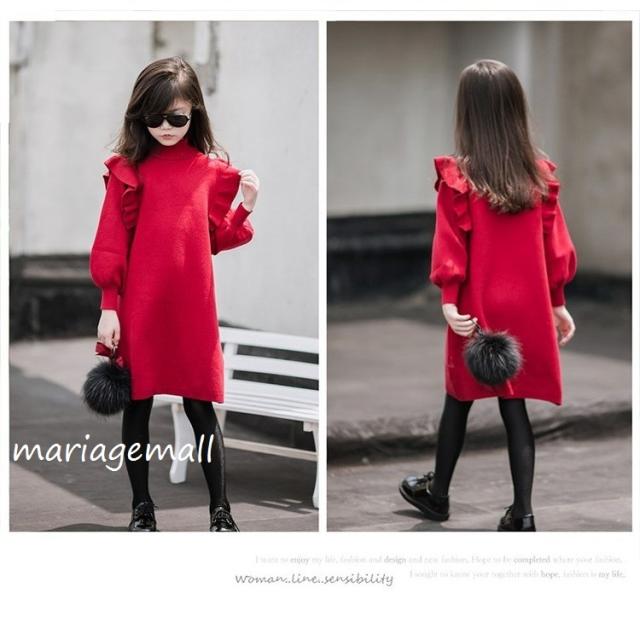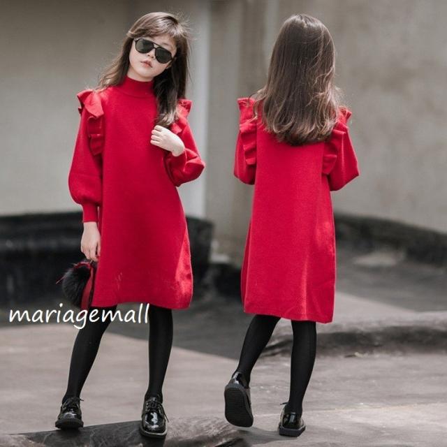 親子服子供服メリヤス ワンピース キャミワンピース 春秋 女の子 膝丈 ひざ丈 長袖 きれいめ 子ども服 可愛い ジュニア服 結婚式/単品売りパーティ上品見