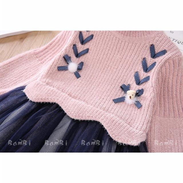 子供服 ワンピース キッズ 女の子 長袖 秋冬 厚手 切り替え おしゃれ 子供服 キッズ ジュニア 暖かい カジュアル 可愛い 女児 小学生