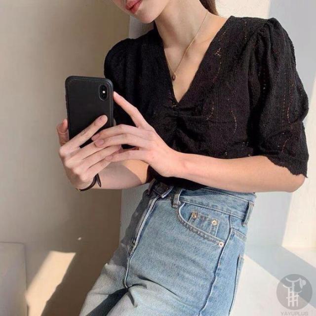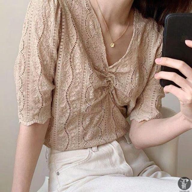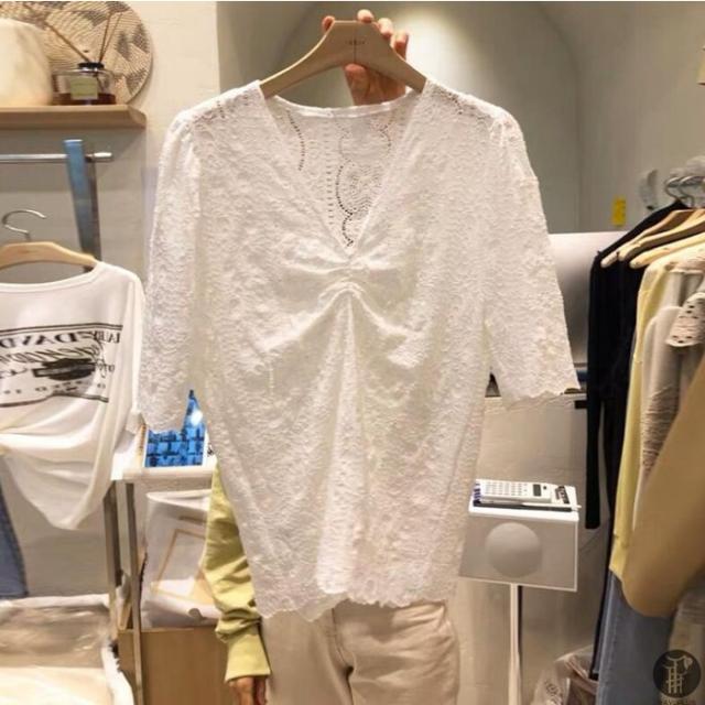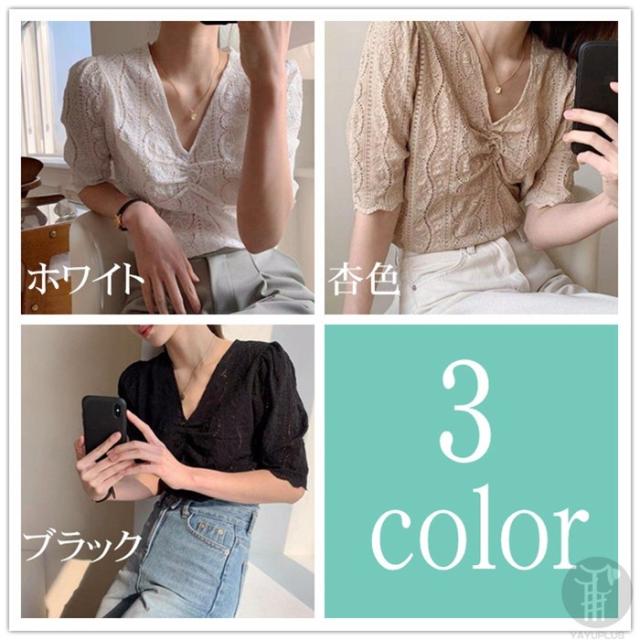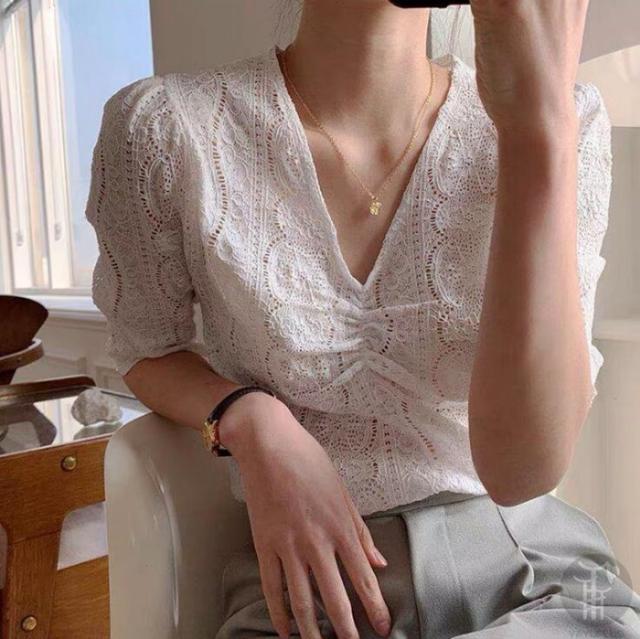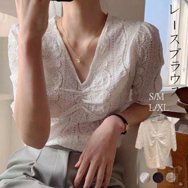 ブラウス シャツ レディース トップス レース 刺繍 彫りブラウス 半袖 Vネック ホワイト 白 夏 着痩せ 上品 可愛い おしゃれ 大人 通勤 OL 通学 シック 代引不可