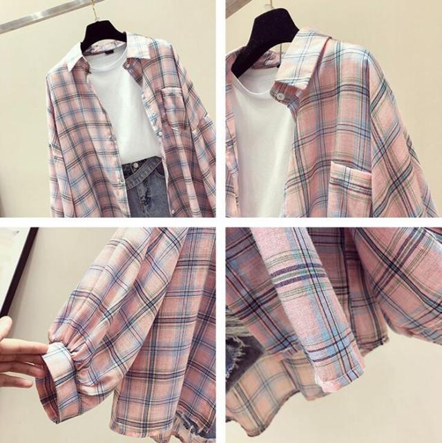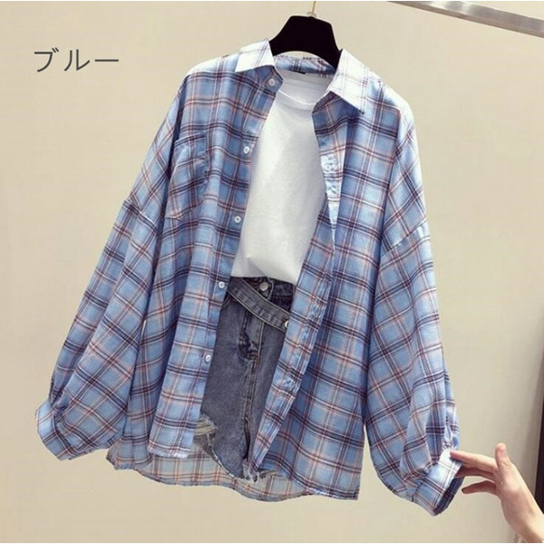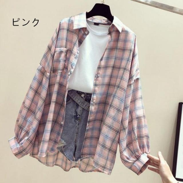 シャツ チェックシャツ ゆったり チェック 長袖シャツ 長袖 トップス レディース チェック柄 夏物 春物 冷房対策 UVカット 体型カバー 代引不可