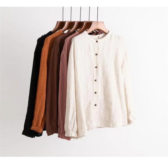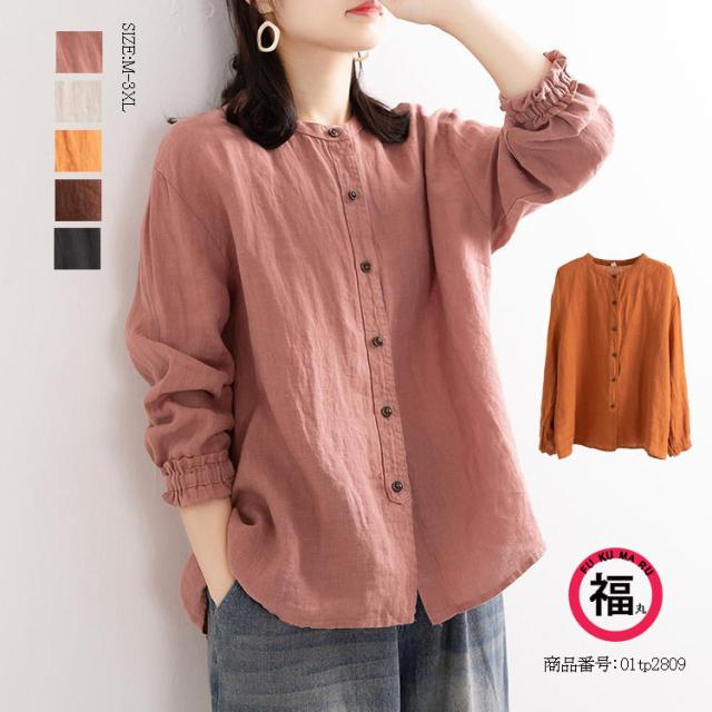 シャツ ブラウス レディース トップス 黒 ブラックシャツ シャツブラウス OL 無地 長袖 大きいサイズ コットン 黒シャツ スタンドカラー オフィス 秋 春 30代