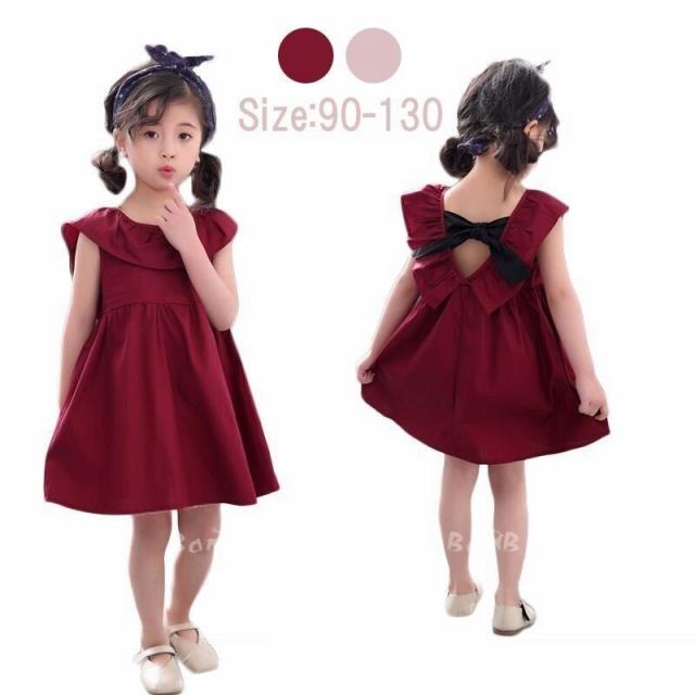 子供服 ワンピース 女の子 半袖 シフォン 膝丈 リボン おしゃれ 子ども服 夏 人気 可愛い