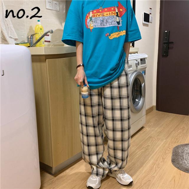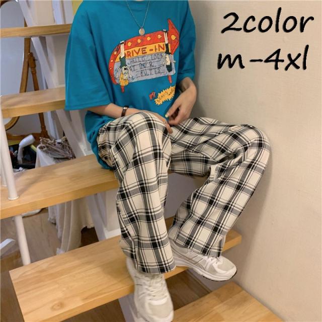 パンツ レディース チェック ズボン 韓国 原宿 ストリート モード系 ロング韓国ファッション ストリート風 個性的 服 春秋