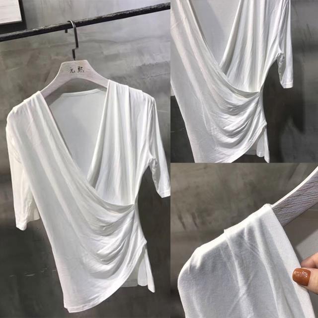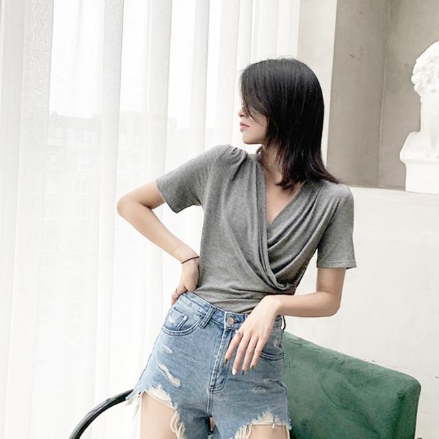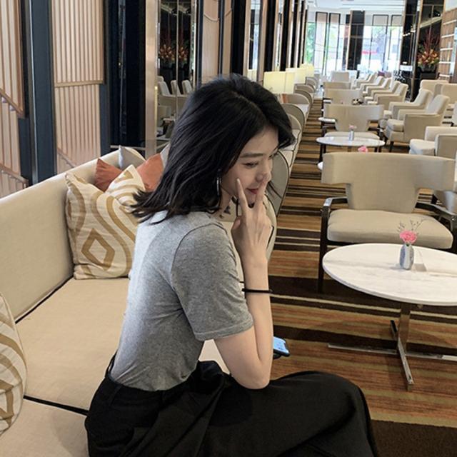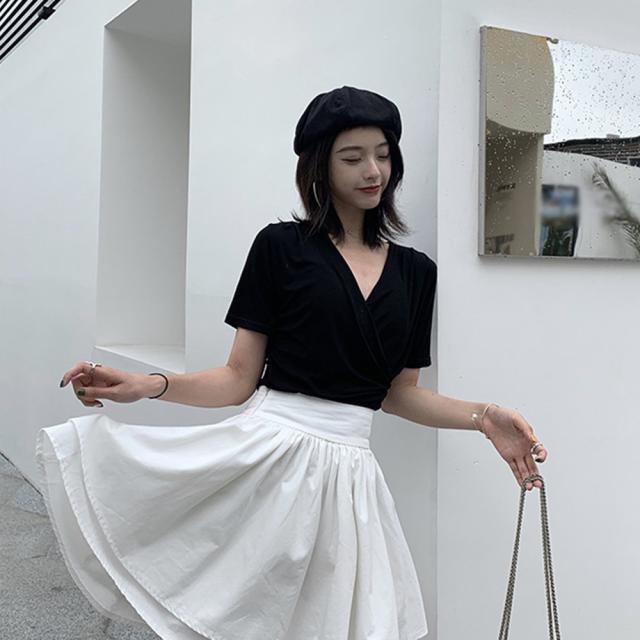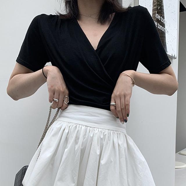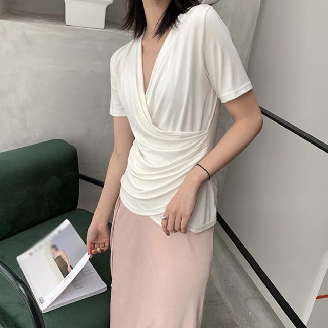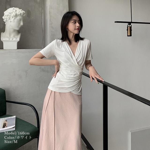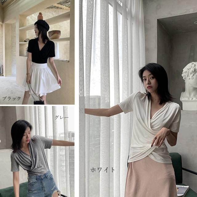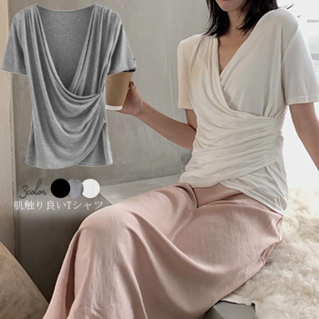 VネックTシャツ トップス レディース 半袖 シンプル カットソー 無地 薄手 カジュアル 伸縮性【ネコポス可】