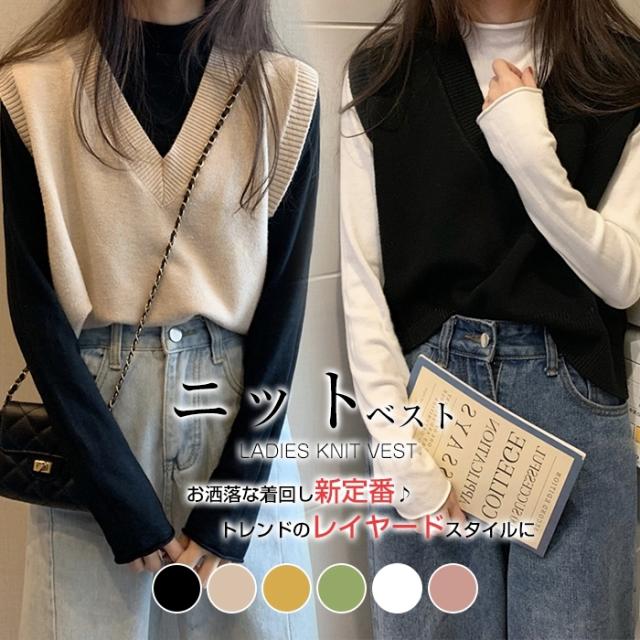 ニットベスト レディース ノースリーブ セーター vネック 重ね着 コーデ トップス カジュアル 秋冬新作 代引不可