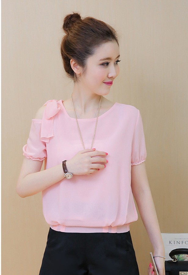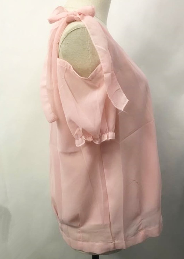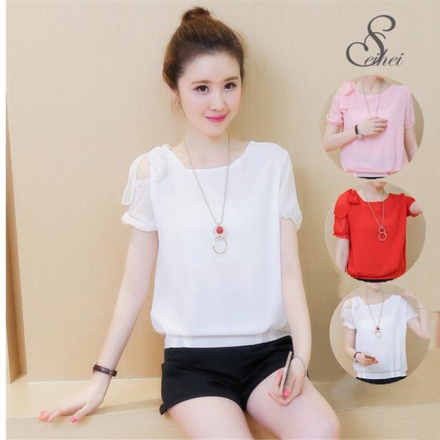 ブラウスレディース 肩リボン カーディガン ゆるカットソー シースルー(メール便送料無料)