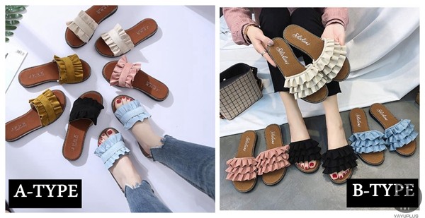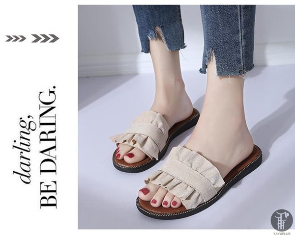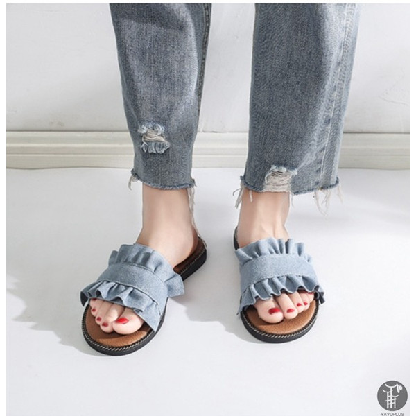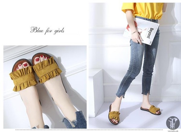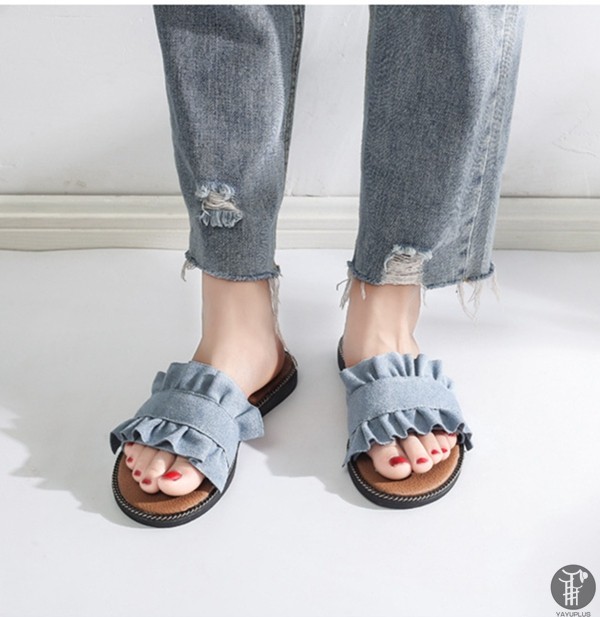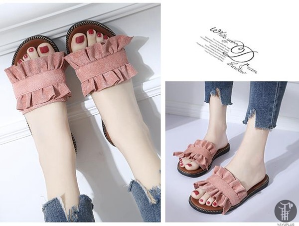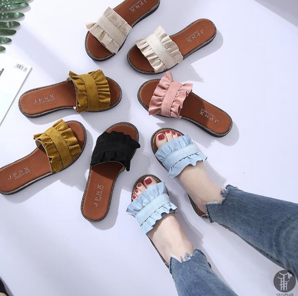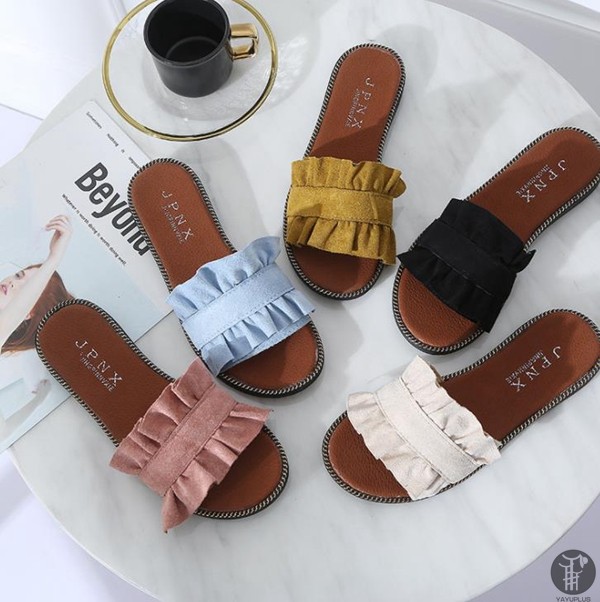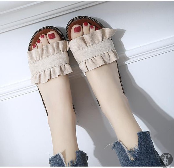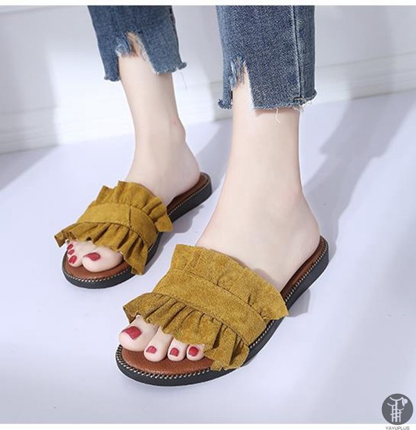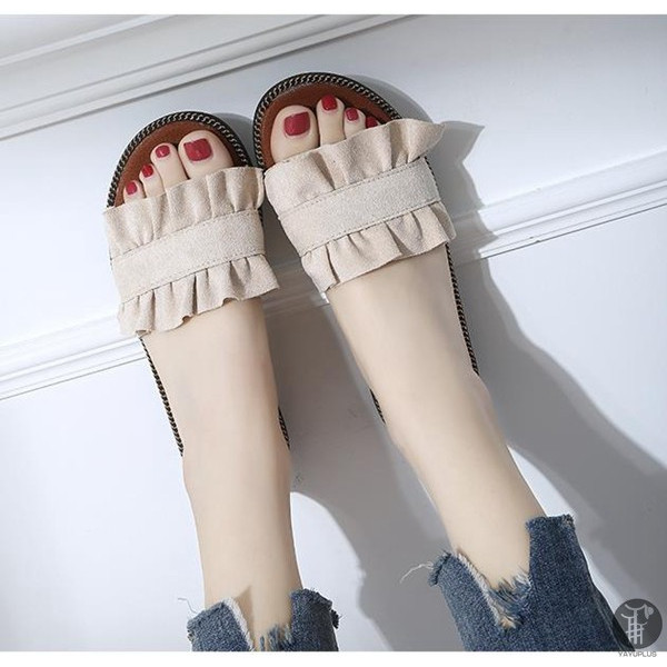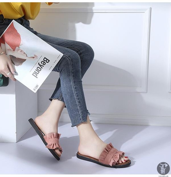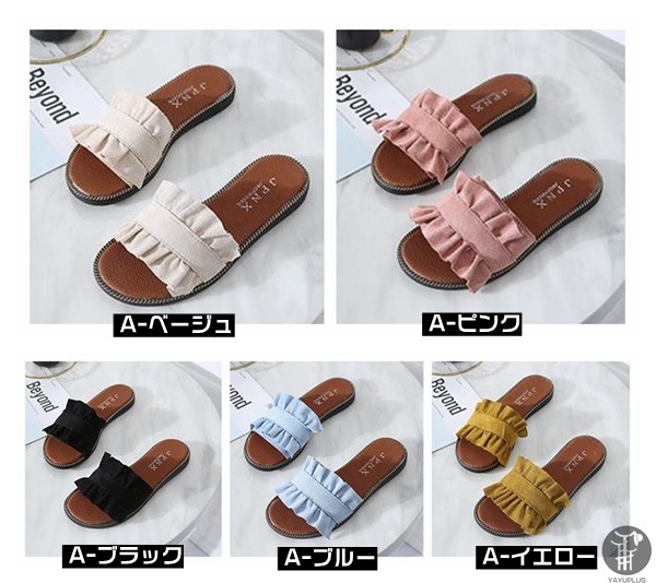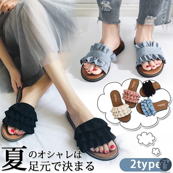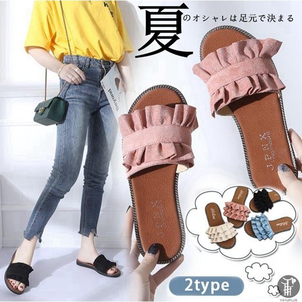 フリル ミュール サンダル レディース ビーチサンダル 2type スエード ペタンコ コンフォート 歩きやすい 痛くない 代引不可