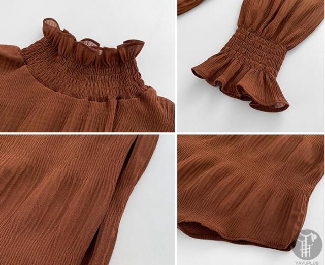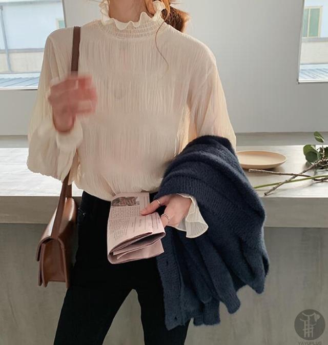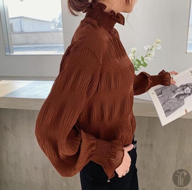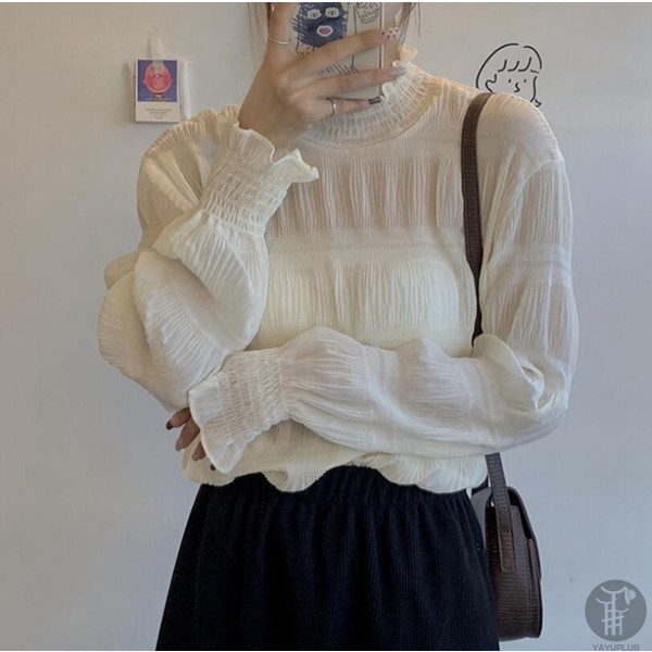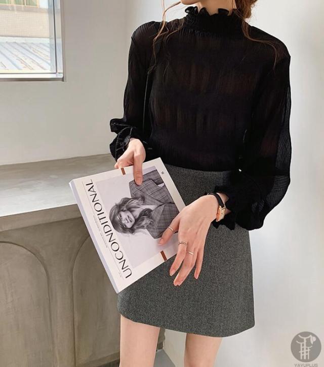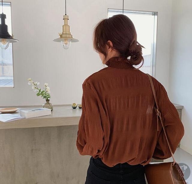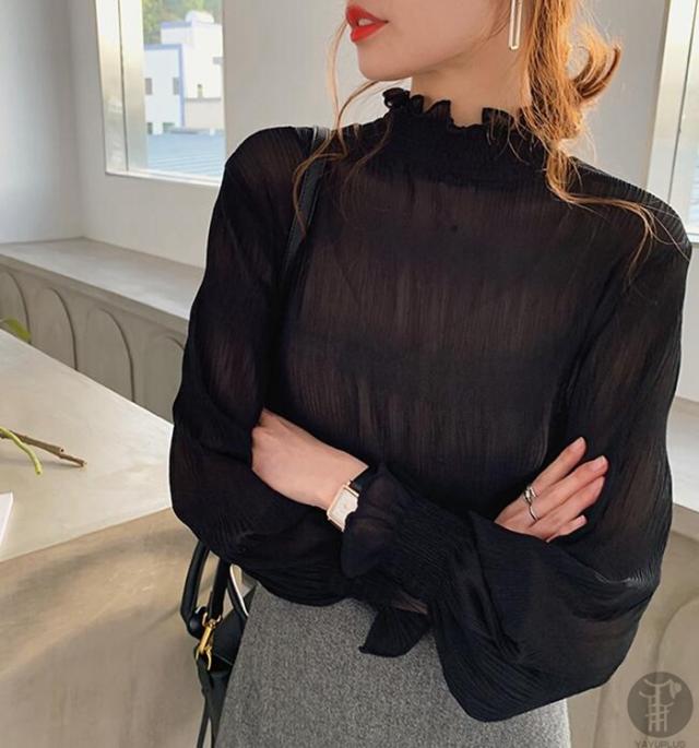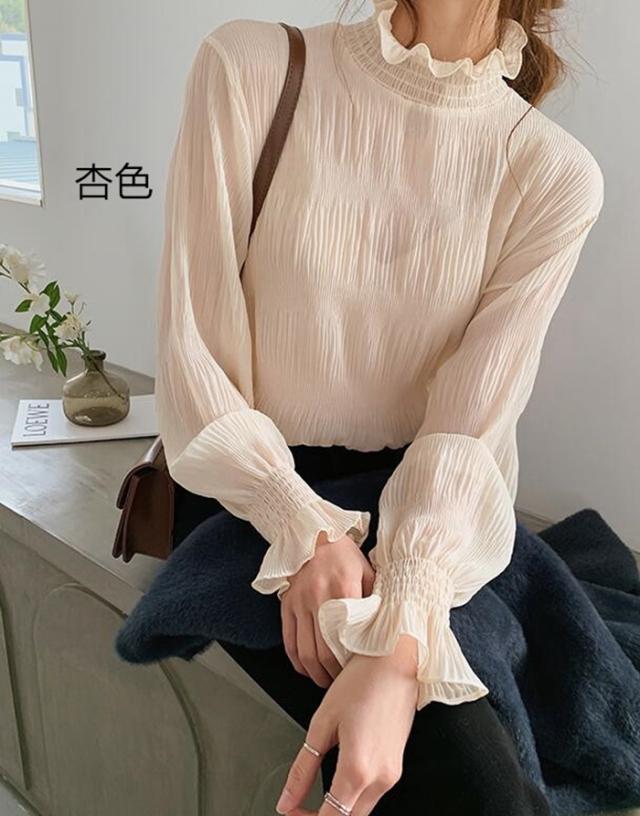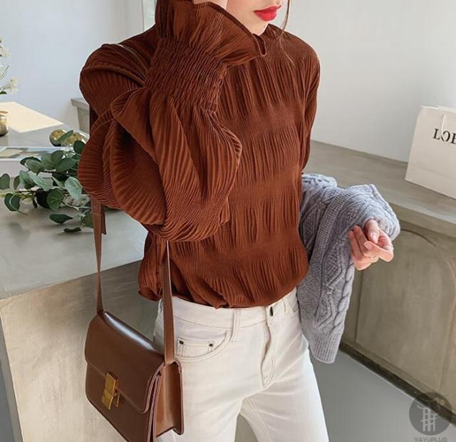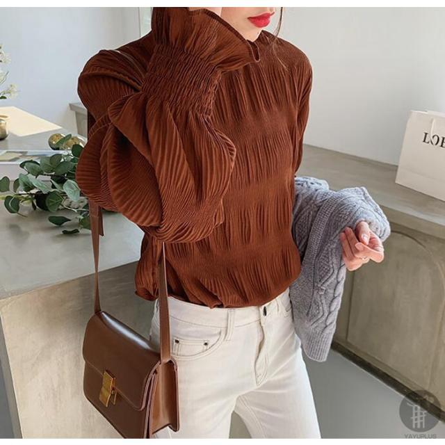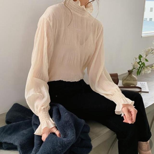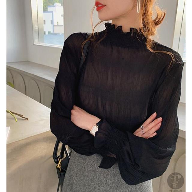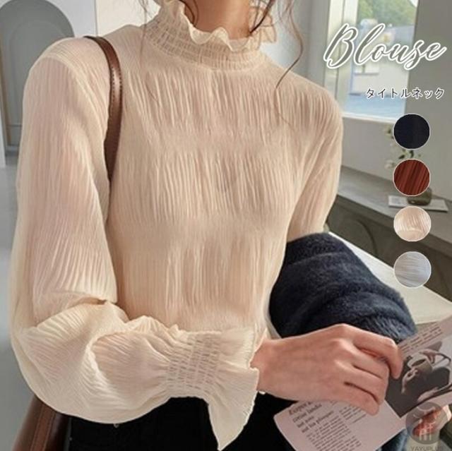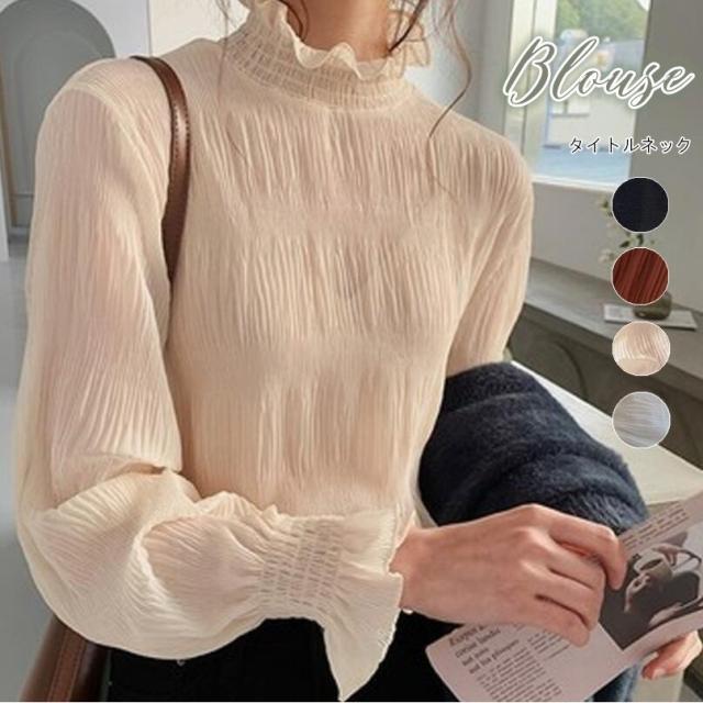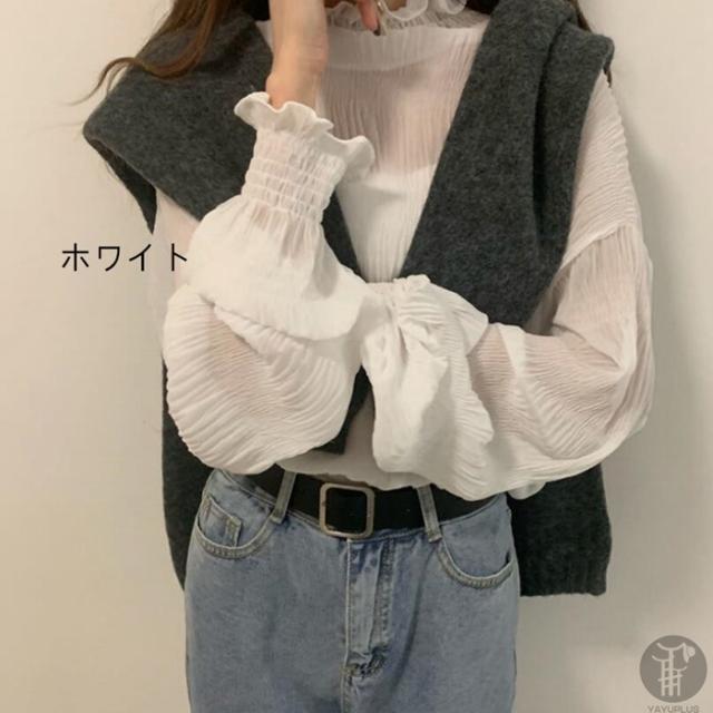 カットソー レディース 長袖 インナー ハイネック パフスリーブ レディースカットソー 透け感 トップス 無地 薄手 春秋 着痩せ きれいめ おしゃれ 代引不可