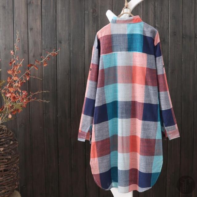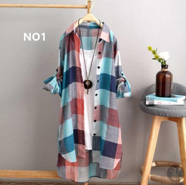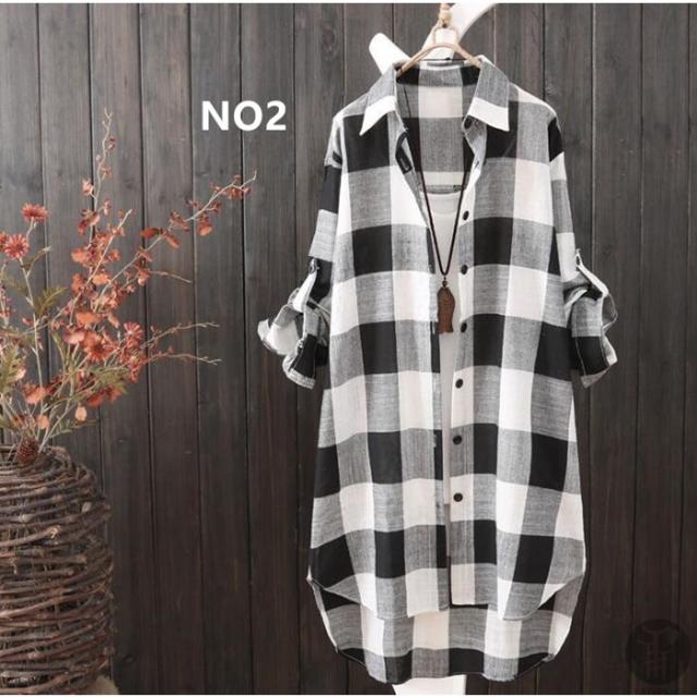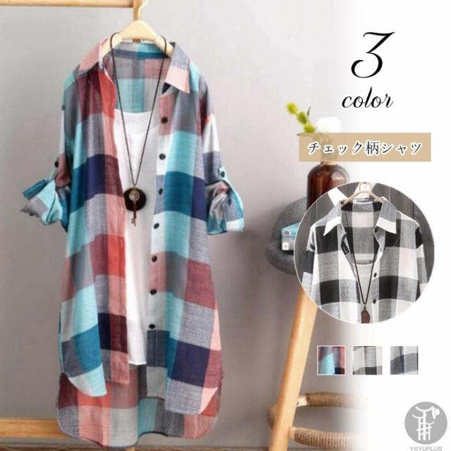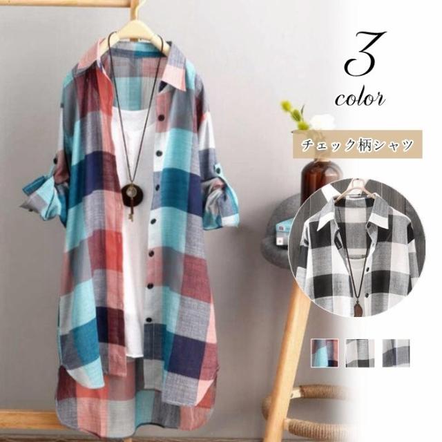 チェックシャツ シャツ ロングシャツ ロングブラウス レディース 長袖 チェック柄 トップス カジュアル 春秋 着痩せ きれいめ おしゃれ 代引不可