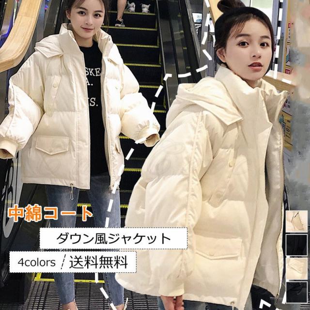 20年秋新作 中綿コート レディース ダウン風コート ショート丈 トップス カジュアル 厚手 フード付き 防寒 暖かい ゆったり きれいめ おしゃれ 送料無料