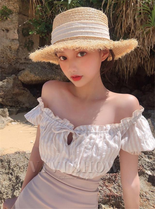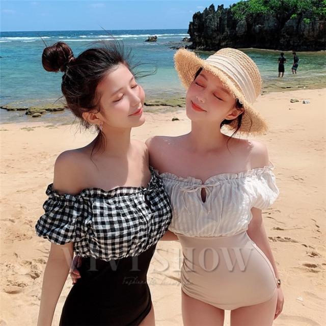 水着 レディース 体型カバー ビキニ 花柄 フレアブラ チェック 無地 上下別柄 おしゃれ かわいい オトナ女子 大人