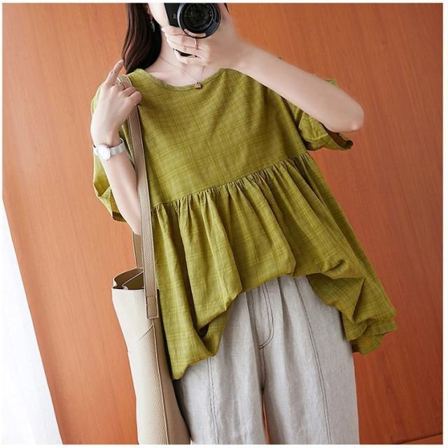 ブラウス レディース 40代 春夏 オシャレブラウス 韓国風 チュニック 半袖チュニック Tシャツ 大きいサイズトップス ゆったり 通勤 体型カバー 上品 カジュアル