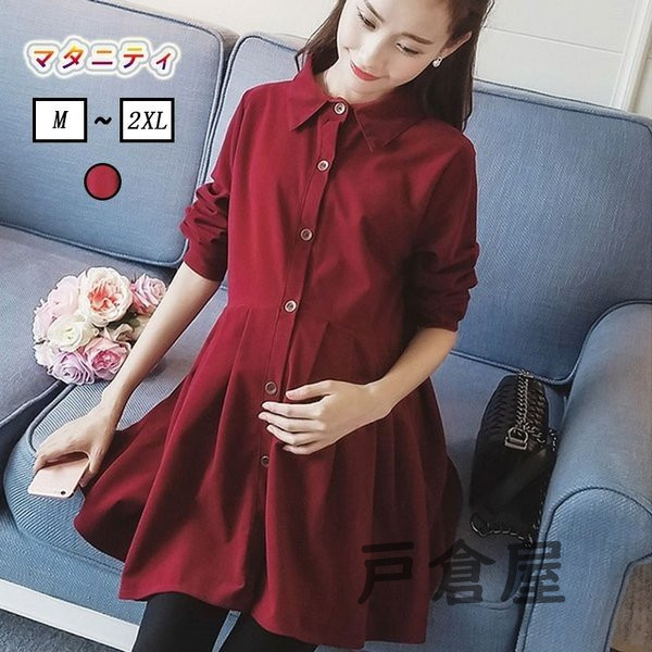 マタニティ シャツワンピース レディース 妊婦ワンピース トップス シャツ 妊娠 大きいサイズ 妊娠服 マタニティウェア きれいめ 長袖 お呼ばれワンピース