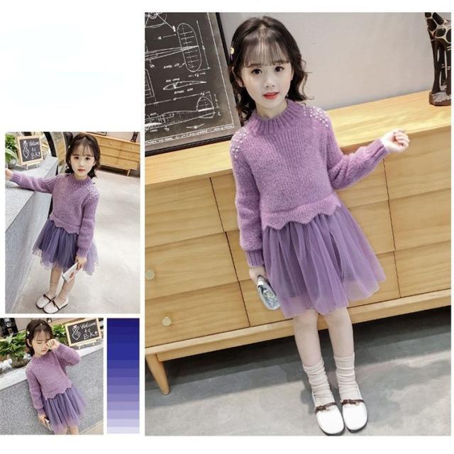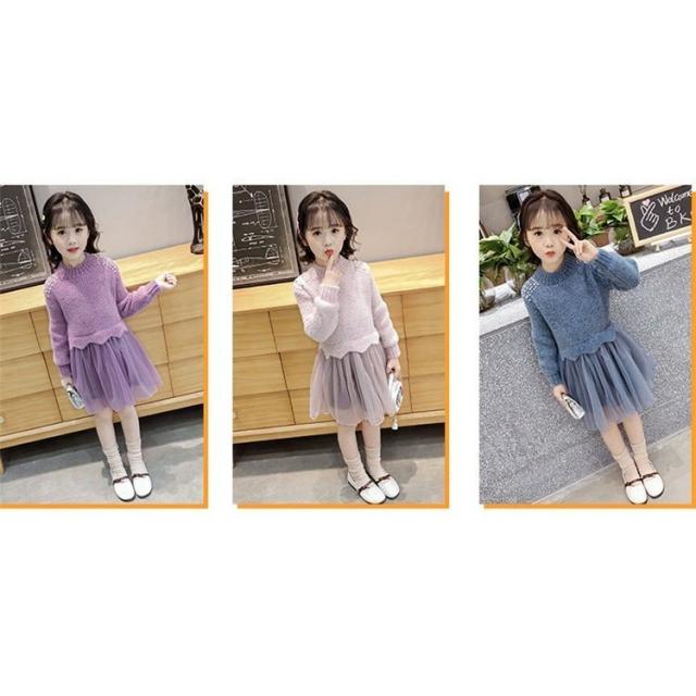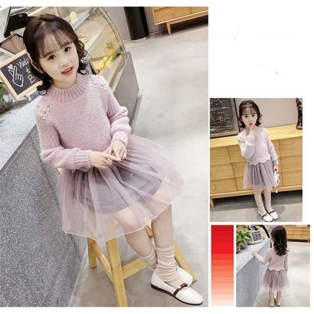 子供服 ワンピース 女の子 長袖 子供ドレス dress キッズ 秋冬 ニットワンピース 膝丈 セーター 韓国子供服 ジュニア インナー カジュアル おしゃれ 可愛い 新品