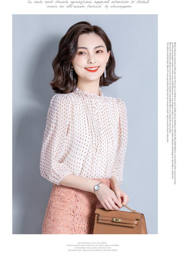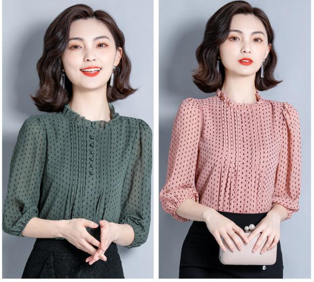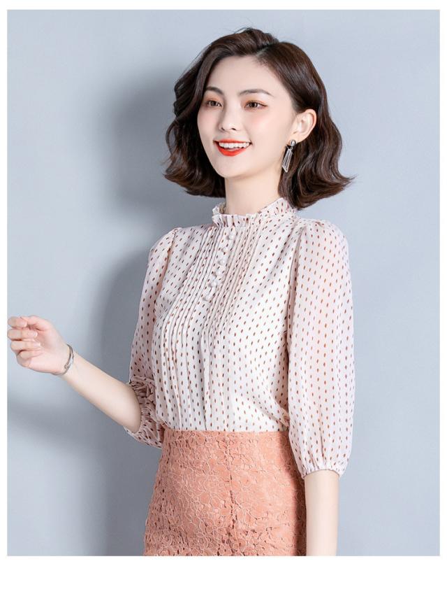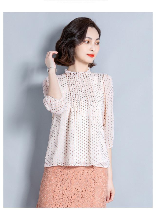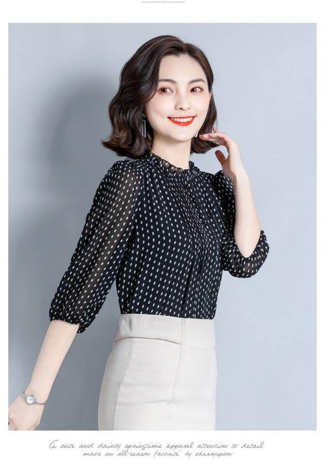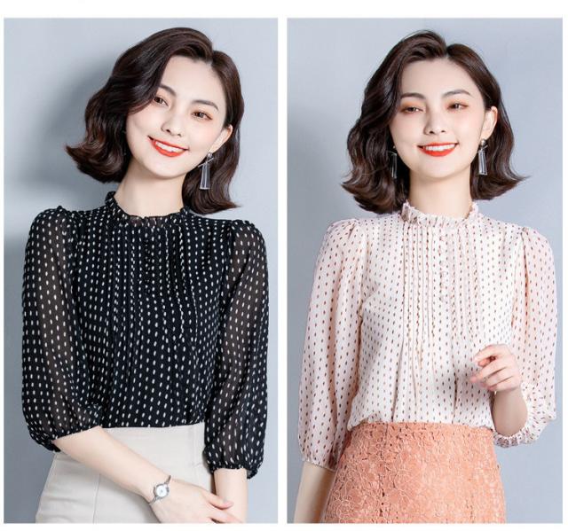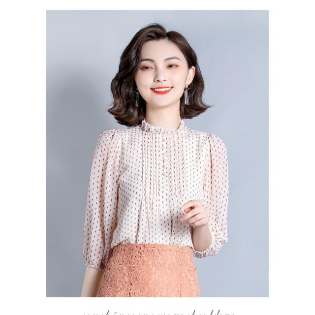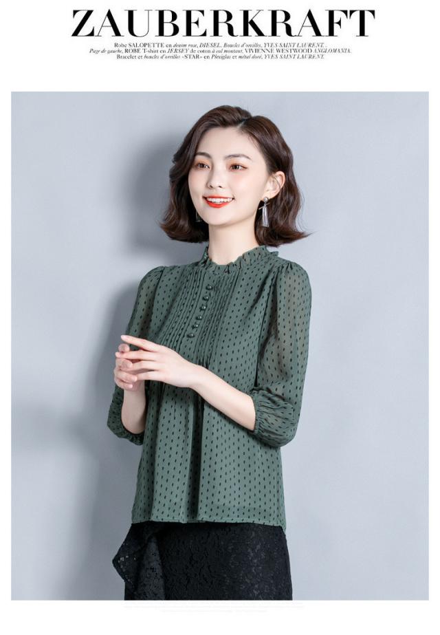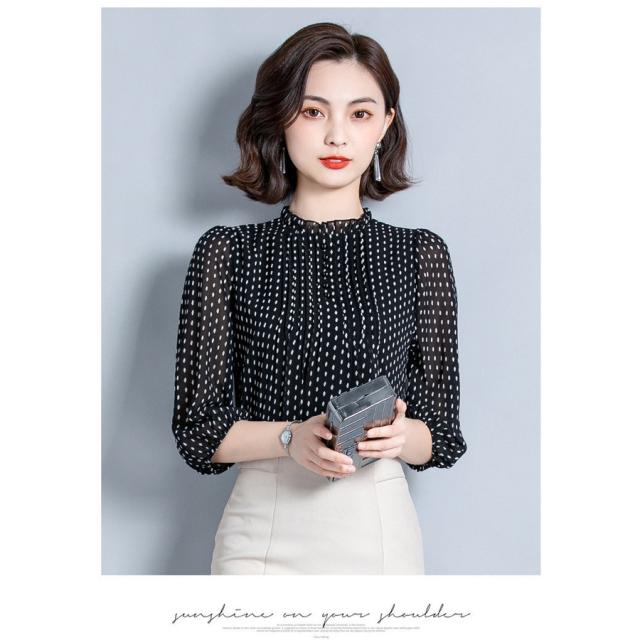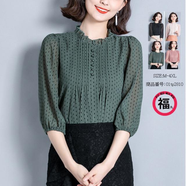 ブラウス シャツ 春秋 春 40代 シャツブラウス トップス プルオーバー レディース Uネック シフォン フリル 通気性 7分丈袖 大きいサイズ シンプル