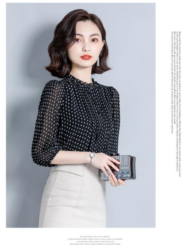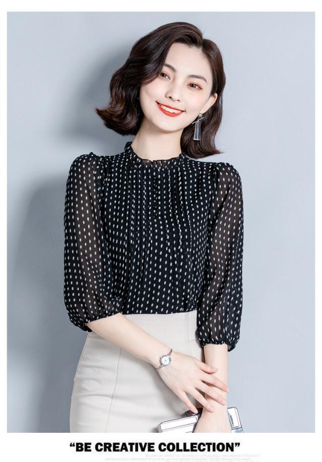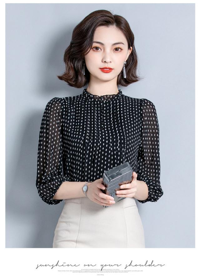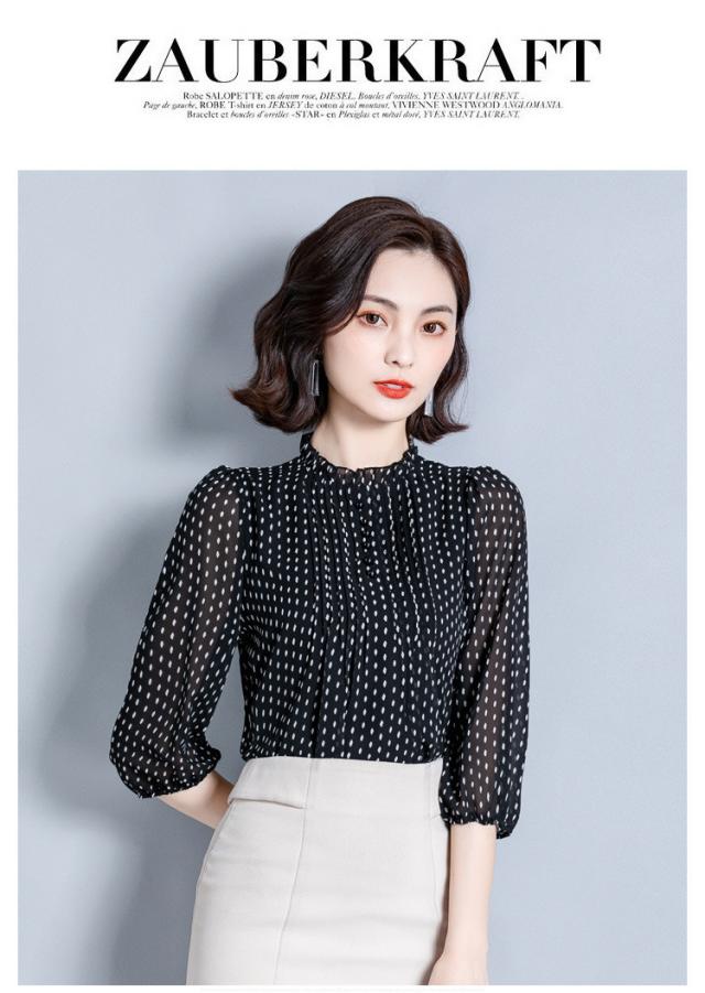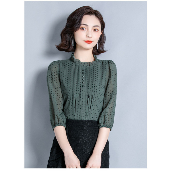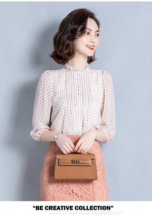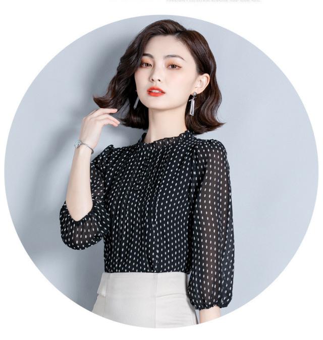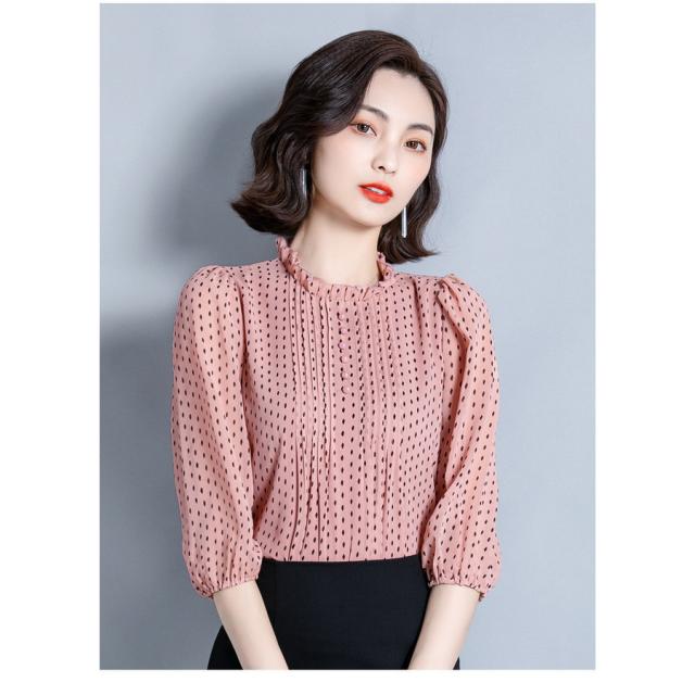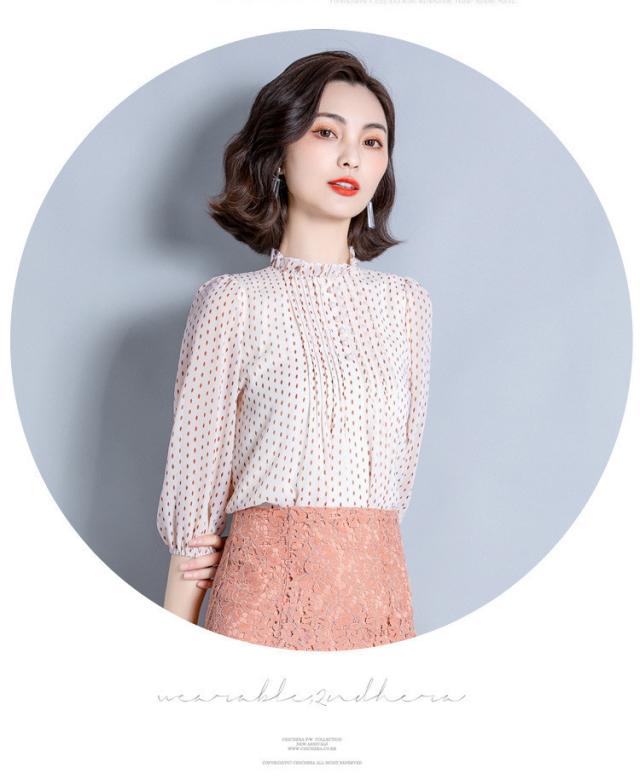 ブラウス シャツ 春秋 春 40代 シャツブラウス トップス プルオーバー レディース Uネック シフォン フリル 通気性 7分丈袖 大きいサイズ シンプル