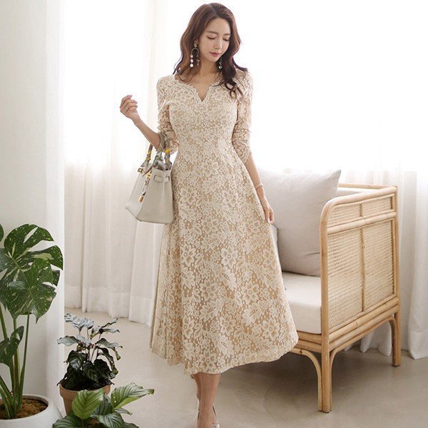 パーティードレス 結婚式 40代 20代 ロング 袖あり 長袖 韓国風 大きいサイズ フォーマルドレス レースワンピース Vネック お呼ばれ 二次会 披露宴 謝恩会 上品