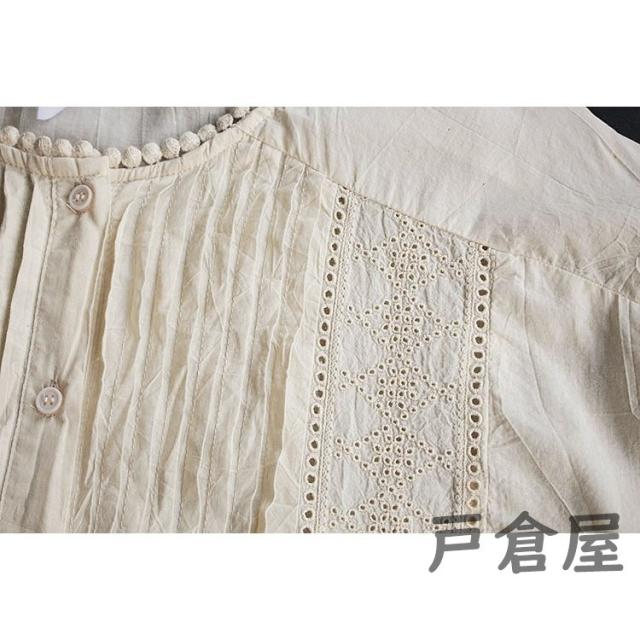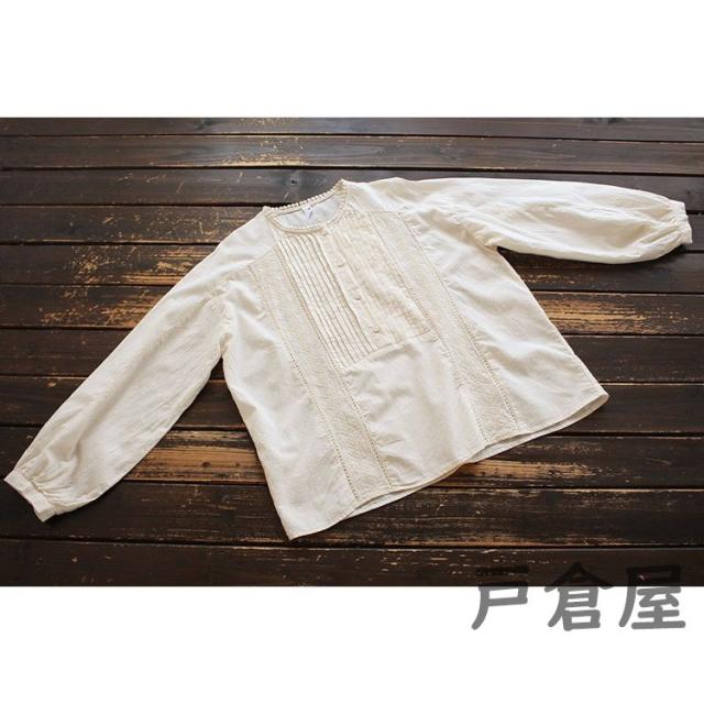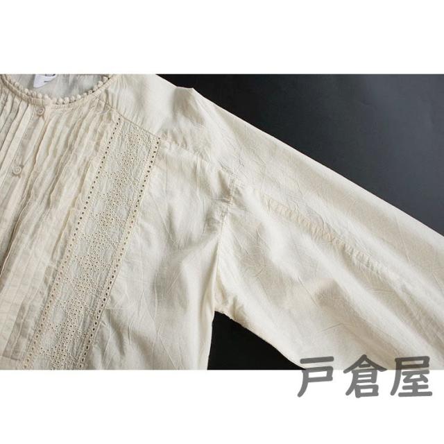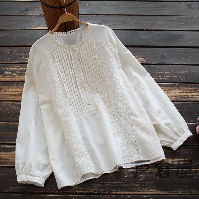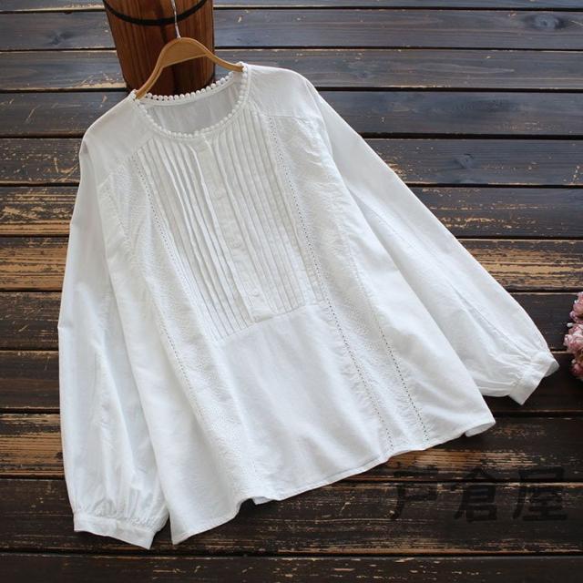 シャツ ブラウス レディース 春秋 大きいサイズ 綿 白色 無地 ヘンリーネック 長袖 パフスリーブ トップス