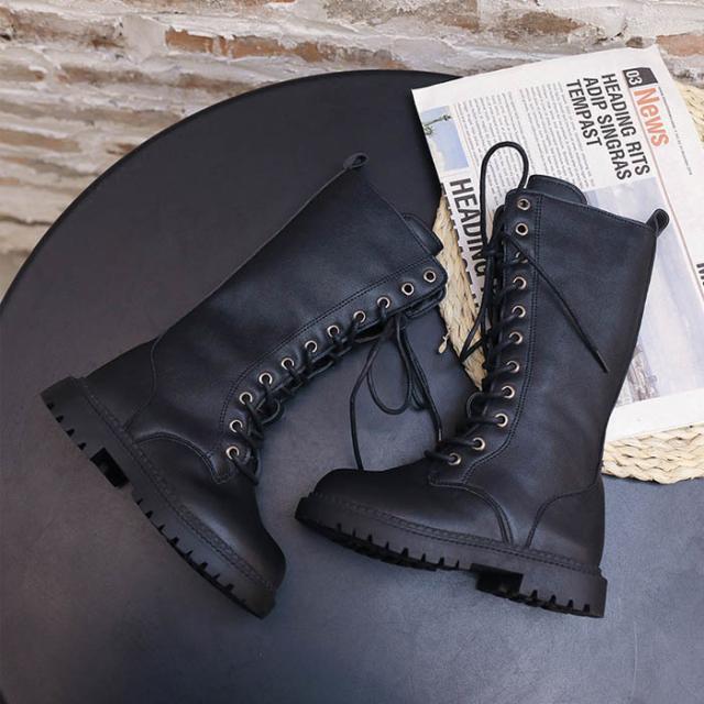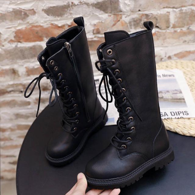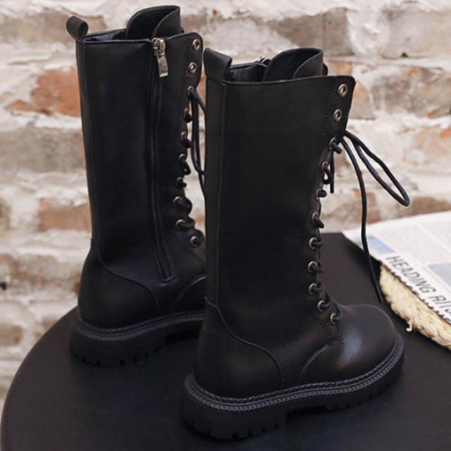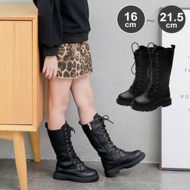 ブーツ 編み上げ キッズ 女の子 ロングブーツ レースアップ 厚底 ヒール 秋冬 キッズ 子供 七五三 遠足 ジュニア ブラック 黒 送料無料