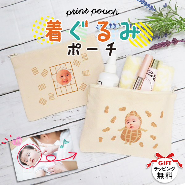 送料無料 ラッピング付き ポーチ プリント 孫 オリジナル グッズ 写真 顔はめ 着ぐるみ 記念日 出産祝い ギフト プレゼント おしゃれ かわいい おじいちゃん おばあちゃん お父さん お母さん 女の子 男の子敬老の日 母の日 父の日 誕生日 おもしろ