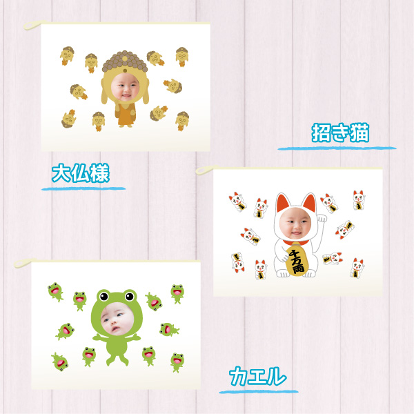 送料無料 ラッピング付き ポーチ プリント 孫 オリジナル グッズ 写真 顔はめ 着ぐるみ 記念日 出産祝い ギフト プレゼント おしゃれ かわいい おじいちゃん おばあちゃん お父さん お母さん 女の子 男の子誕生日 おもしろ gp-pouch-chara2