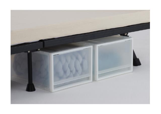 長さ約2mのベッドフレームを2分割する事で、様々な居住空間への設置が可能。搬入経路の心配がないので、模様替えや引っ越し、収納にも便利です。乗り降りも安心