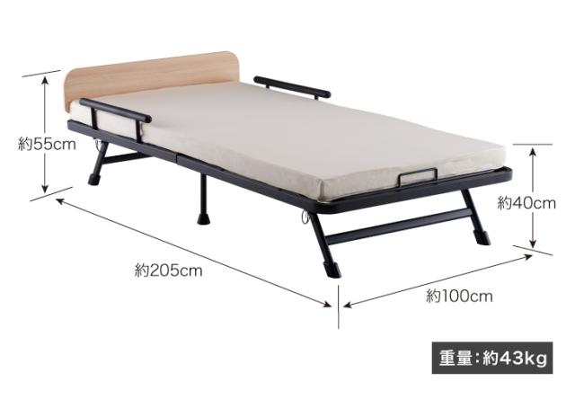 ■本体:(約)W1,000×L2,050×H550mm / (約)43kg折りたたみ時:(約)W1,010×L210×H1,000mm