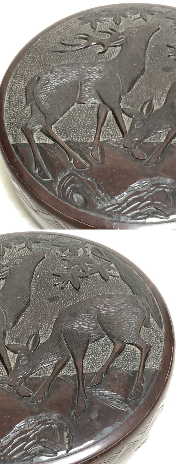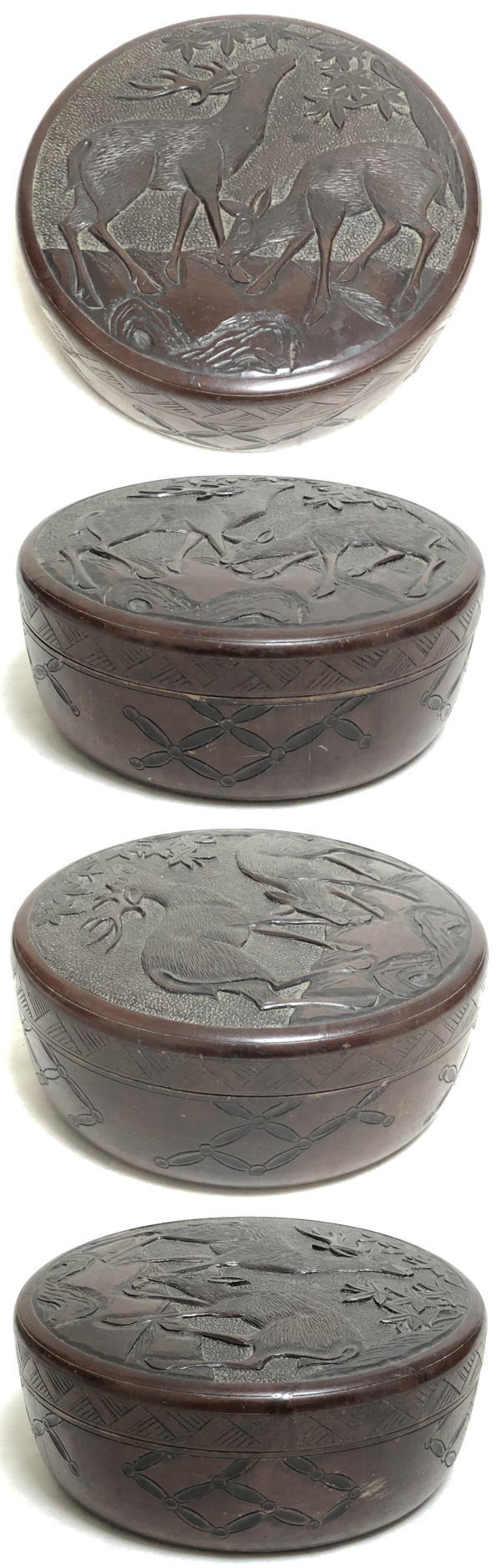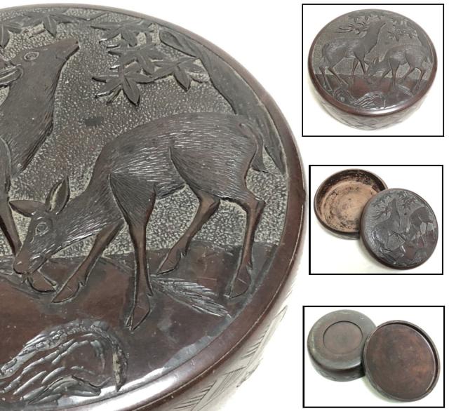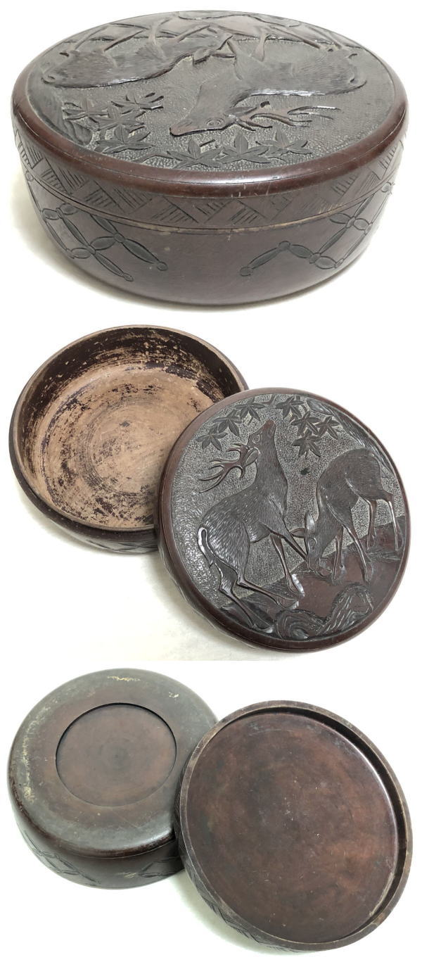 【送料無料】時代物 丸形お菓子箱 木製鹿彫刻堆漆器 茶道具 ウブ品 日本古玩 伝世品 入手困難 骨董 (茶道先生所蔵品出し) 威龍彩雲通販