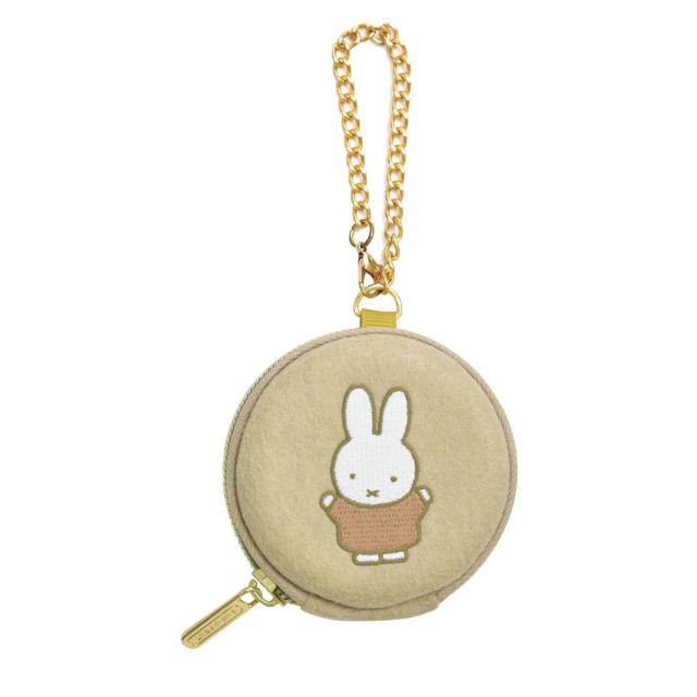 ふんわりフェルト生地に、レトロタッチの刺繍が映える!ポップでカラフルな雑貨で人気の「p+g design」から、PUPU FELT(ププフェルト)コインケースが新登場。PUPU FELT(ププフェルト)は、プレス成形されたぷっくりフェルトを使った、フェルト製雑貨のブランド。フェルトの柔らかな風合いに、素朴で可愛らしいミッフィーちゃんの刺繍を組み合わせた温かみのある仕上がりが魅力。大きく開くラウンドファスナーの開口部は、小さく折りたたんだお札やコインなどの出し入れがスムーズ♪内側にはお薬シートやメモを分けておくのに便利なポケットが一つ。両サイドにはササマチも付いているので、コインのこぼれ落ちをしっかりと防止!程よい硬さにプレス成形されたフェルトを使用しているため、コインケースとしてはもちろん、ピアスなどのアクセサリーやイヤホン等の繊細な小物の収納にもオススメ。華やかなゴールドカラーのキーチェーンで、バッグのハンドルやベルトループに取り付ければ、ファッションの可愛らしいワンポイントに♪