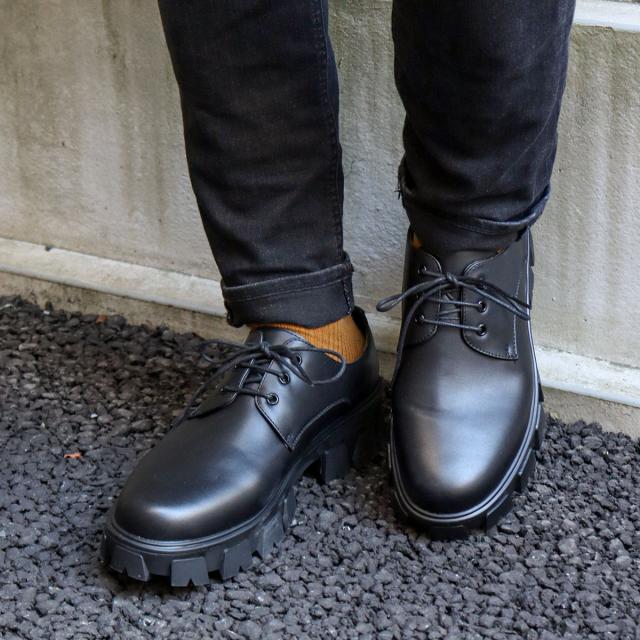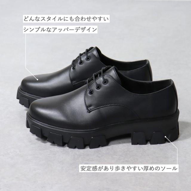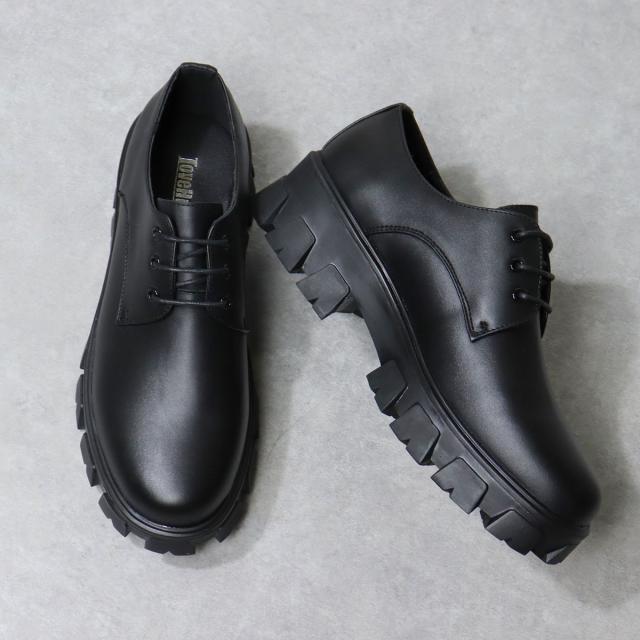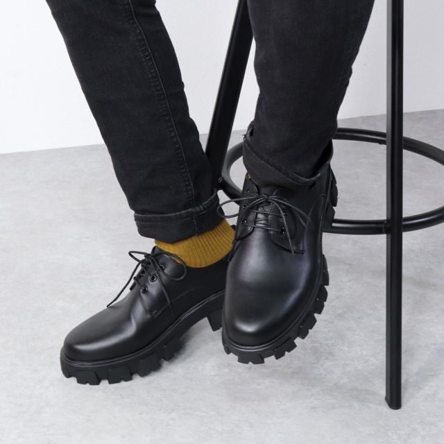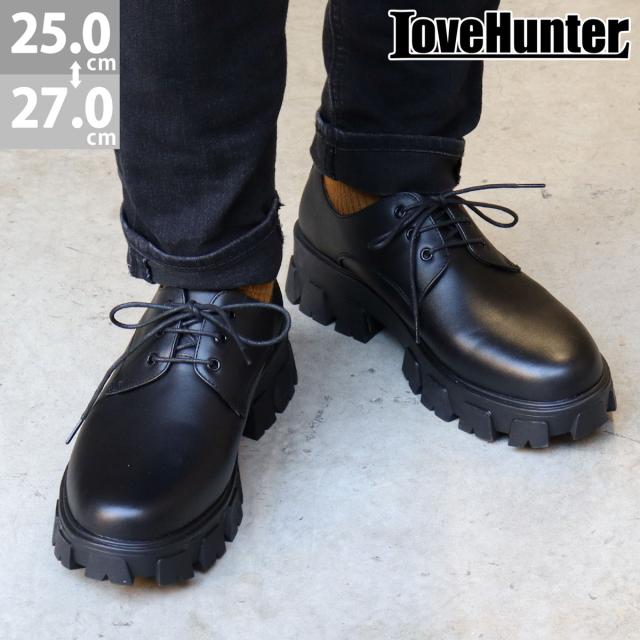 カジュアル シューズ ビジネス シューズ メンズ レースアップ 外羽根 プレーントゥ 厚底 タンクソール 5cmヒール 25.0cm〜27.0cm 黒 ブラック LOVEHUNTER ラブハンター No.1716
