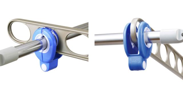 ●物干し竿と竿受けの両方を一度に挟めるWアームの竿ストッパーです。