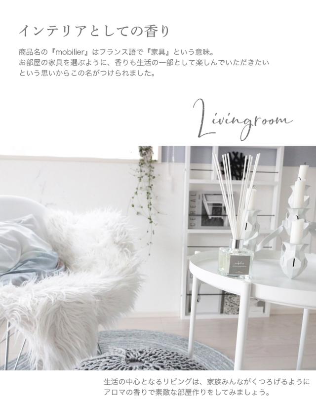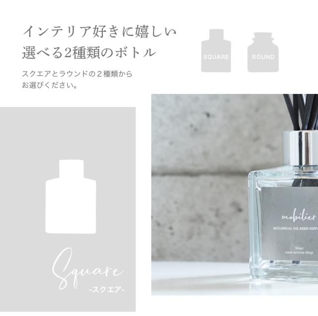 アロマリードディフューザー ガラス mobilier(モビリエ)(ガラスボトル・選べるリードスティック3mm10本・選べるオイル90ml・説明書)