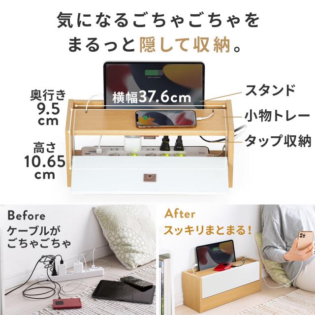 ⇒ご購入の前にご確認下さい電源タップやケーブルなどを収納してお部屋スッキリ。スマホ・タブレットの充電スペースとしても活用できるスタンド付きのケーブルボックス。【WEB限定商品】